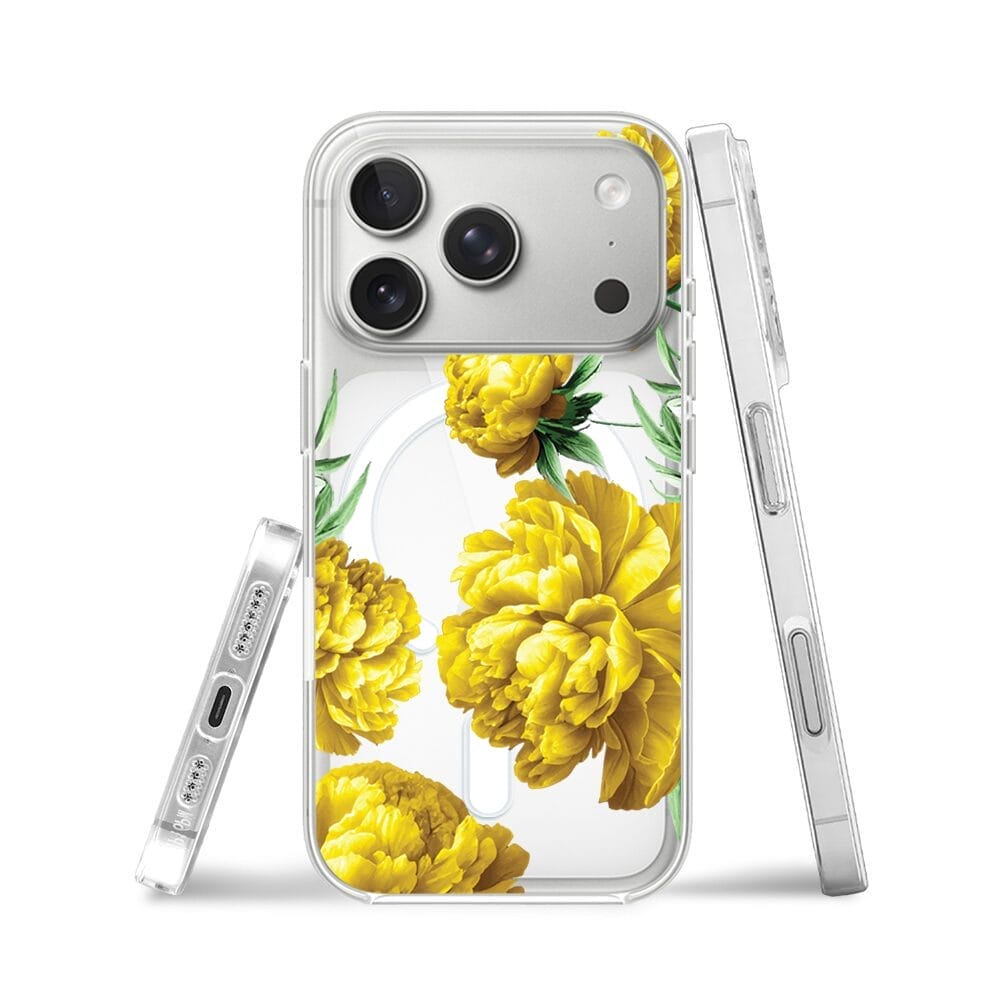 Etui do iPhone 17 Pro z MagSafe przeźroczyste, silikonowe Flexi, żółte piwonie