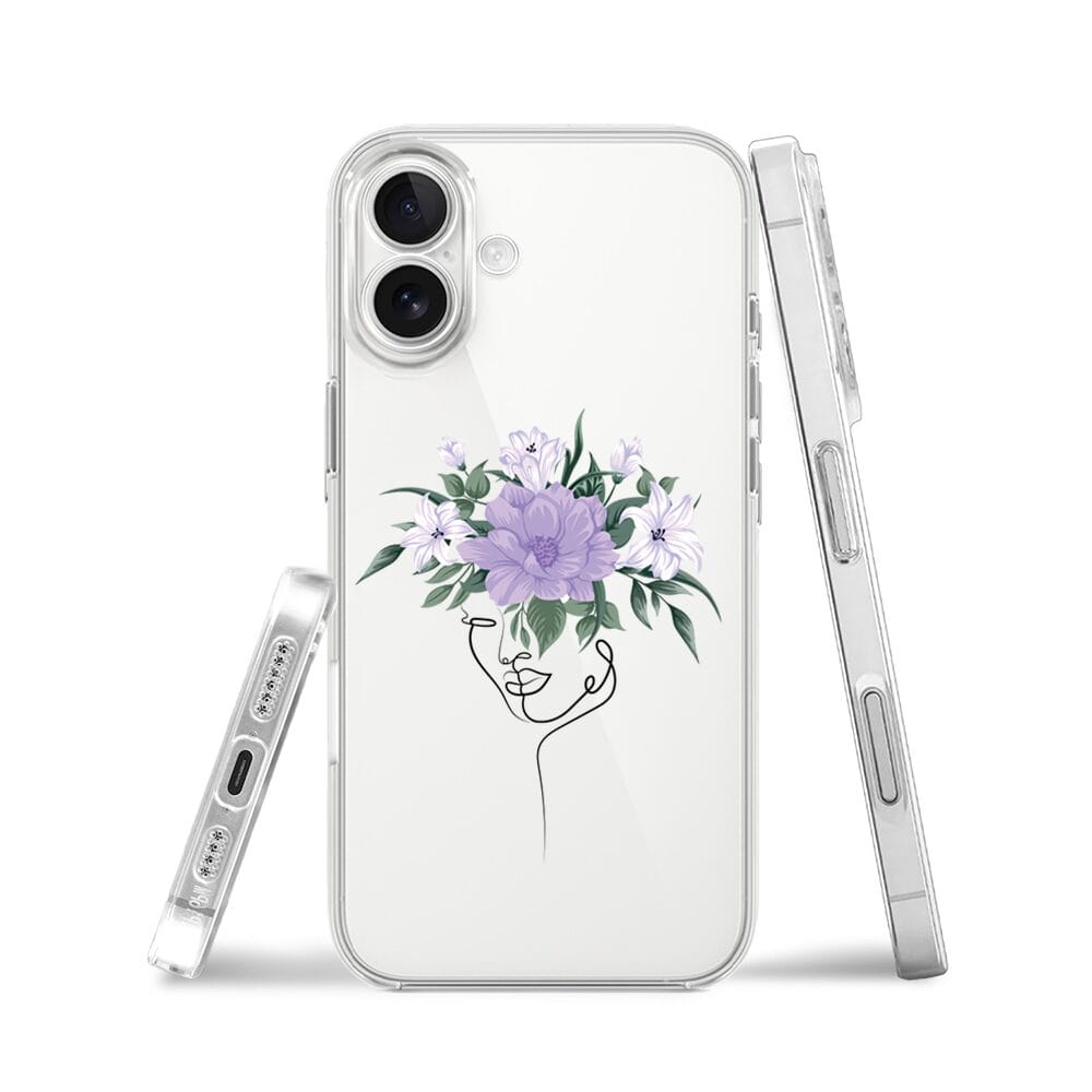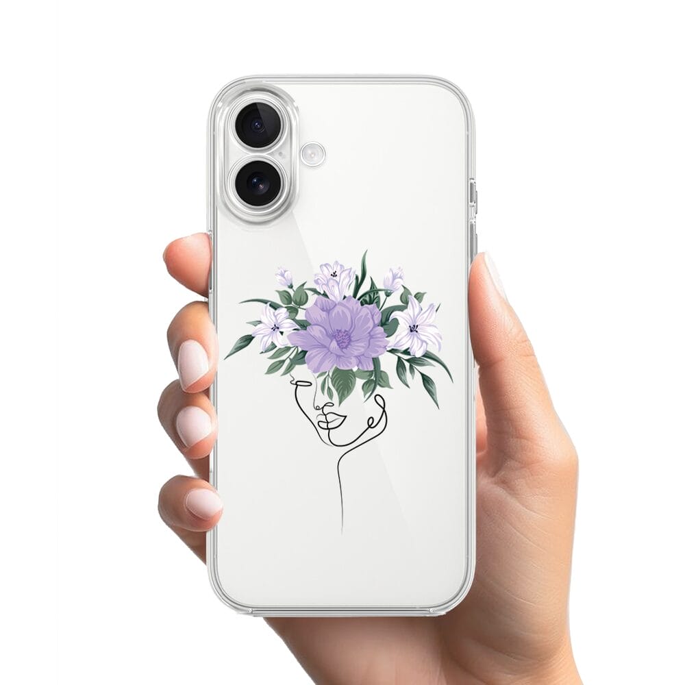 Etui do iPhone 17 przeźroczyste, silikonowe Flexi, kobieta z Kwiatami