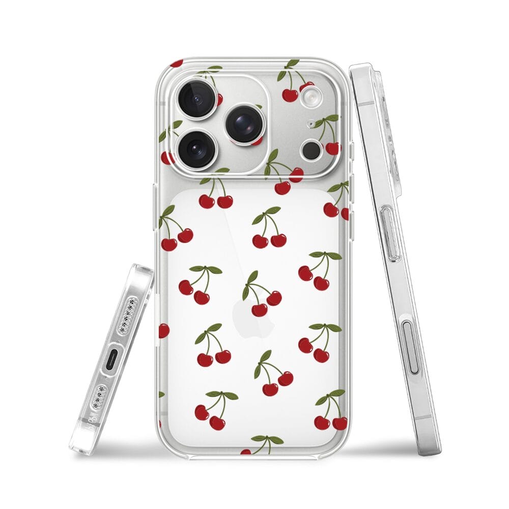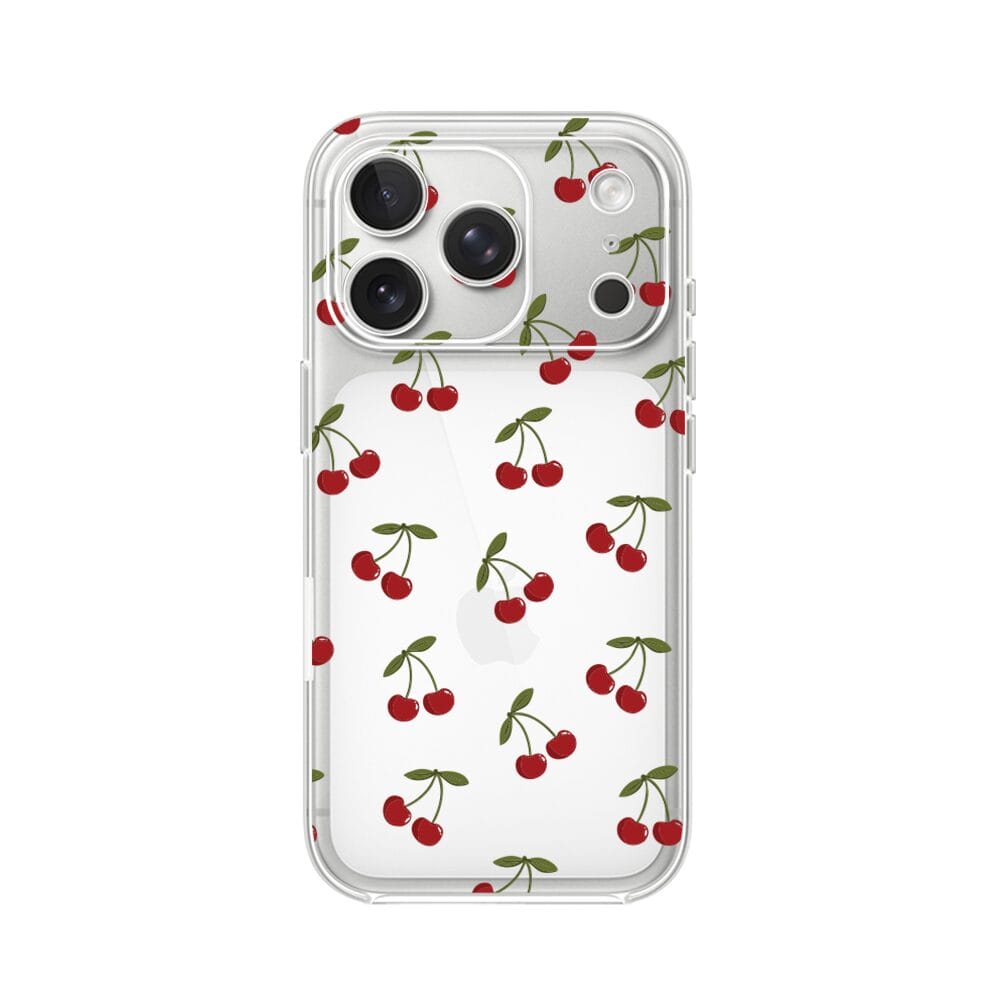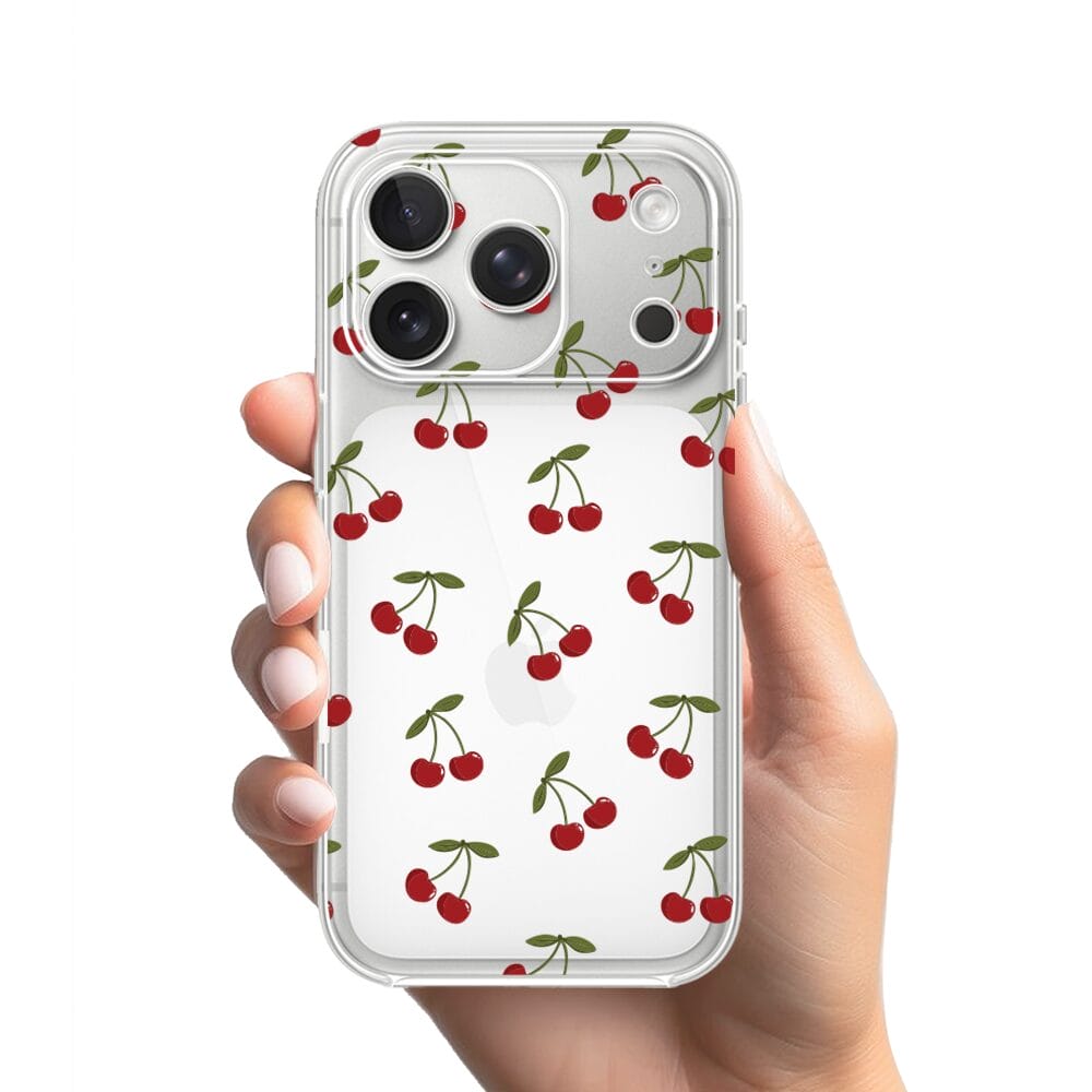 Etui do iPhone 17 przeźroczyste, silikonowe Flexi, Mini Patterns, Wiśnie