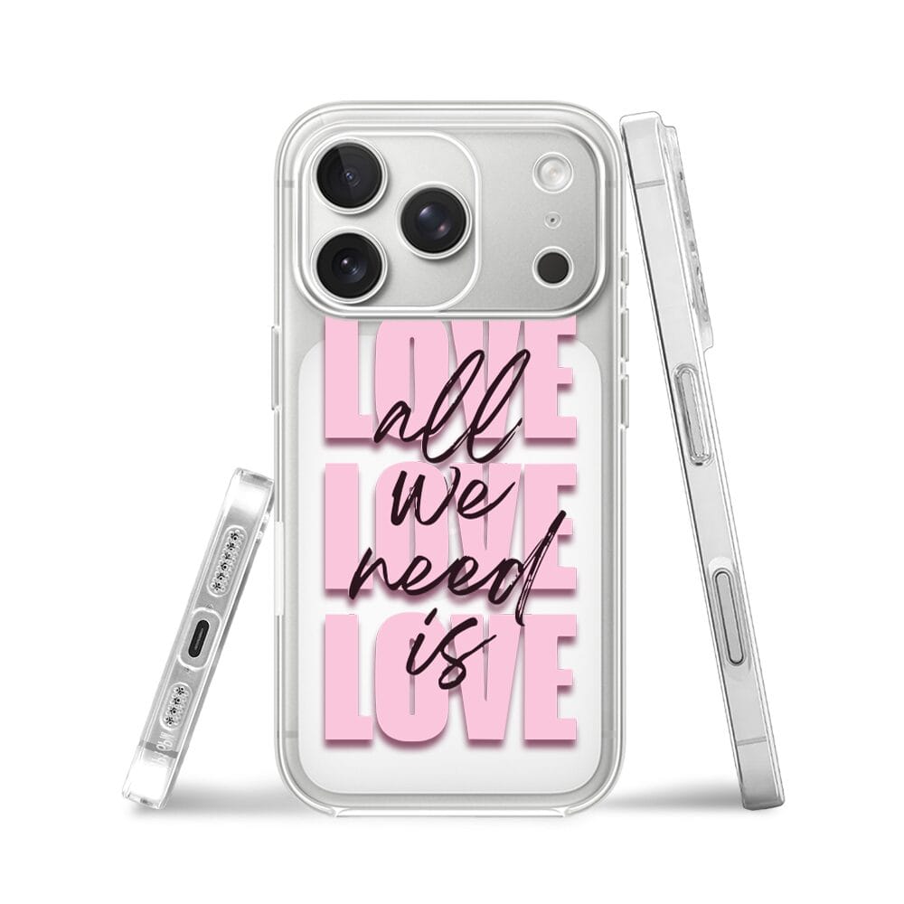 Etui do iPhone 17 przeźroczyste, silikonowe Flexi, Positive Vibes, All We Need Is Love