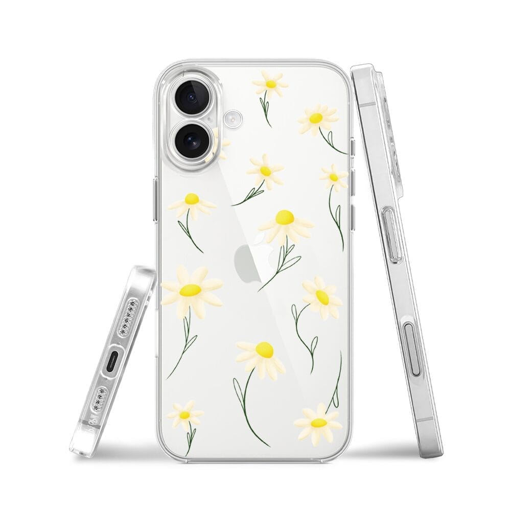 Etui do iPhone 17 przeźroczyste, silikonowe Flexi, stokrotki
