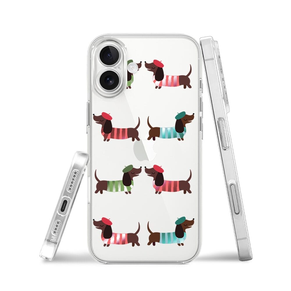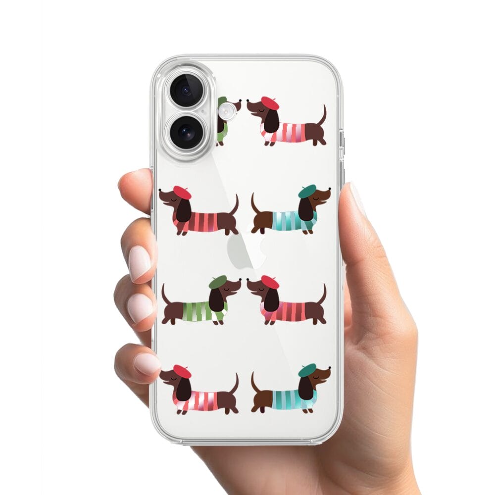 Etui do iPhone 17 przeźroczyste, silikonowe Flexi, Summer Patterns, eleganckie jamniki
