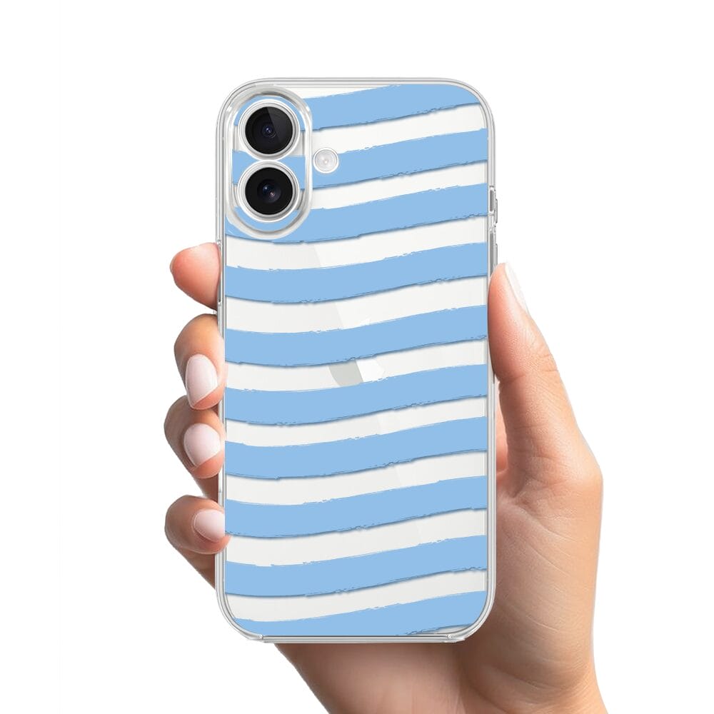 Etui do iPhone 17 przeźroczyste, silikonowe Flexi, Summer Patterns, niebieskie paski