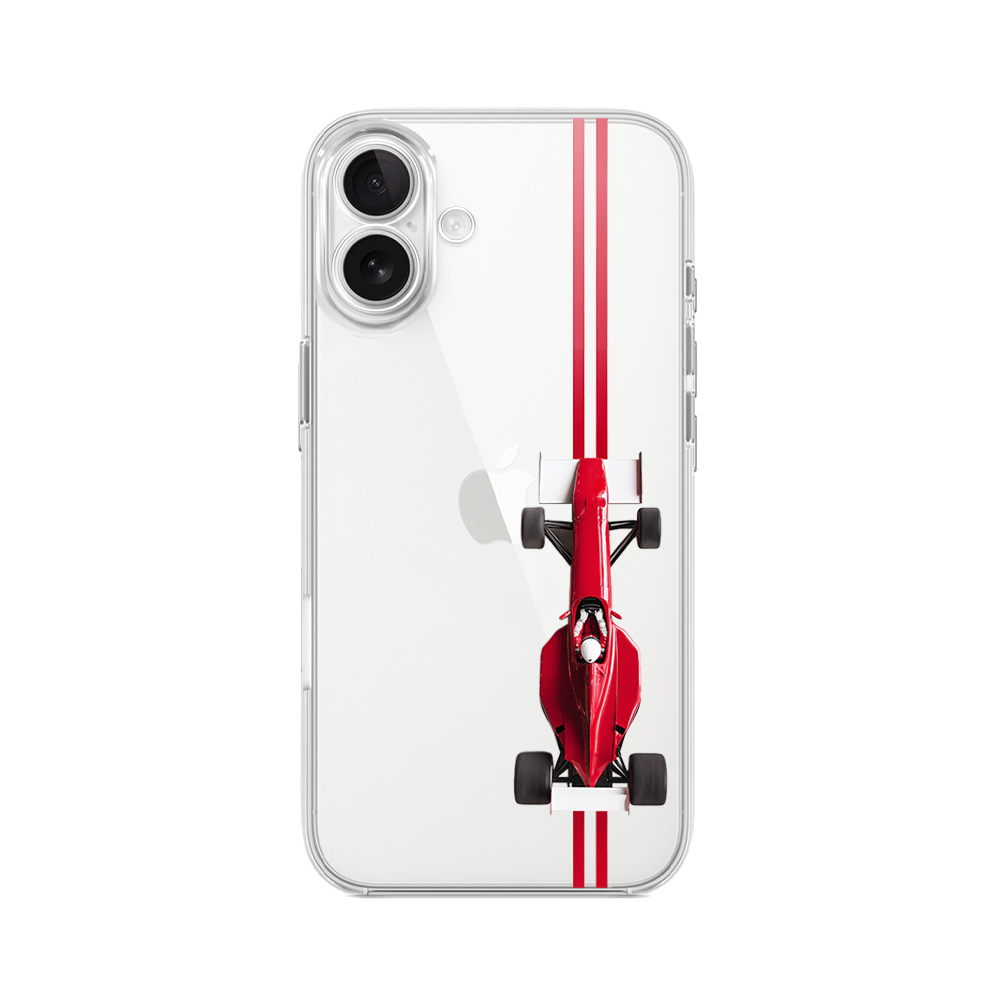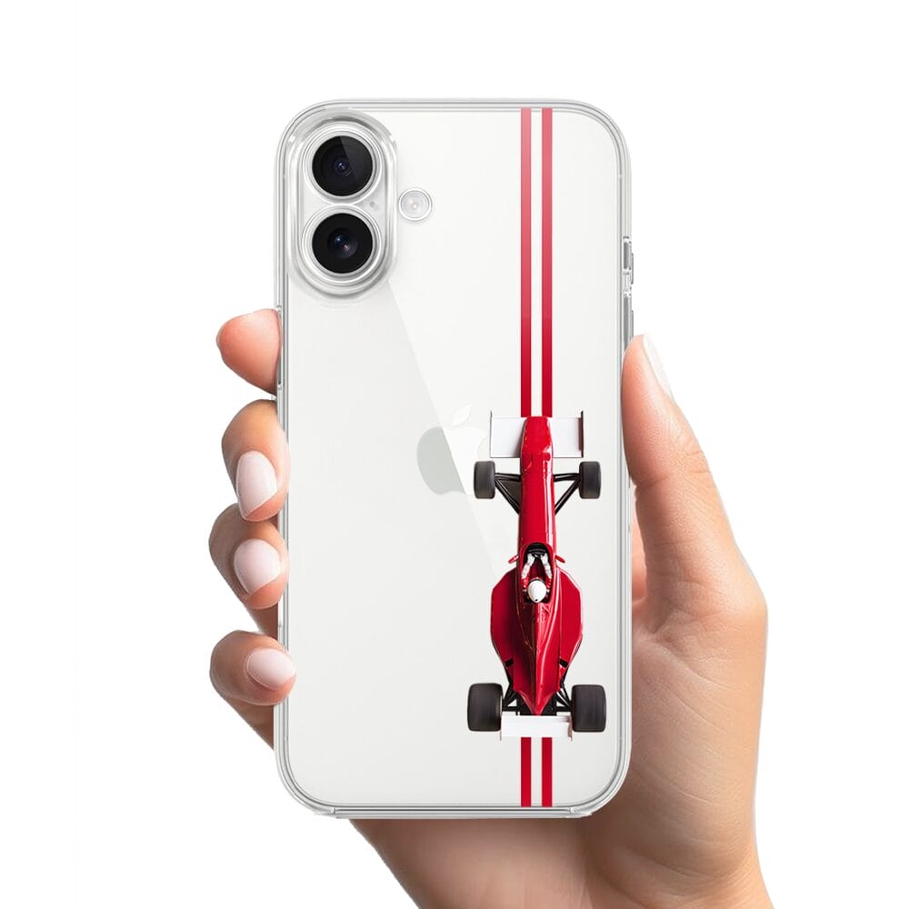 Etui do iPhone 17 przeźroczyste, silikonowe Flexi, Szybkie Auta, czerwone F1