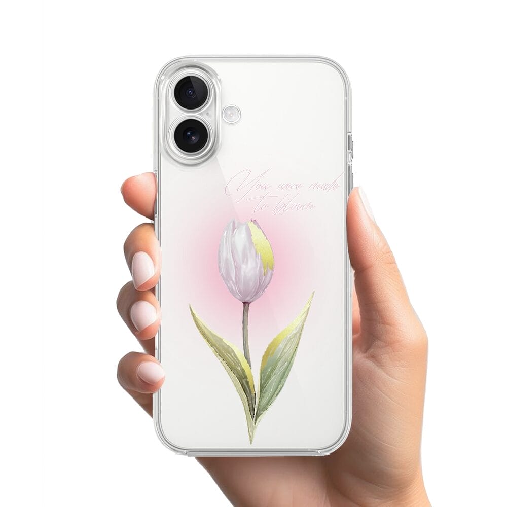 Etui do iPhone 17 przeźroczyste, silikonowe Flexi, tulipan