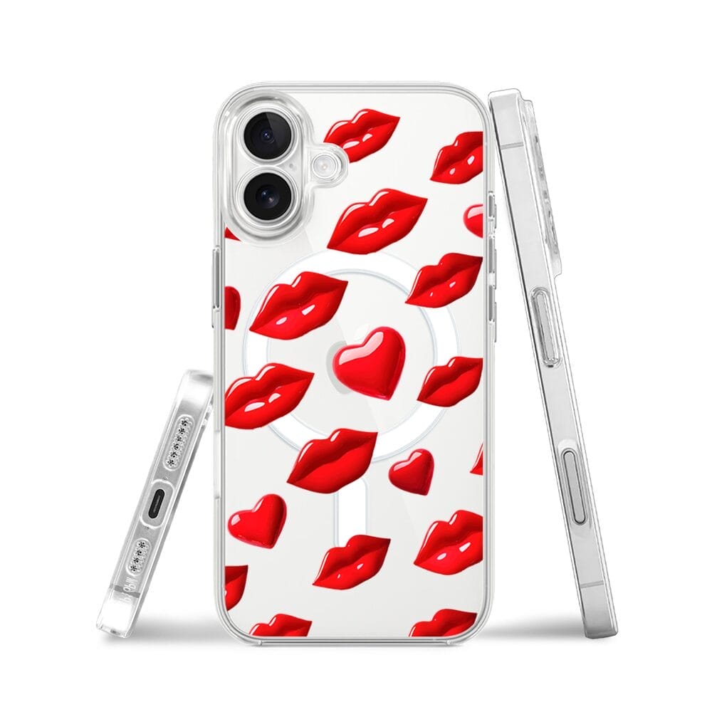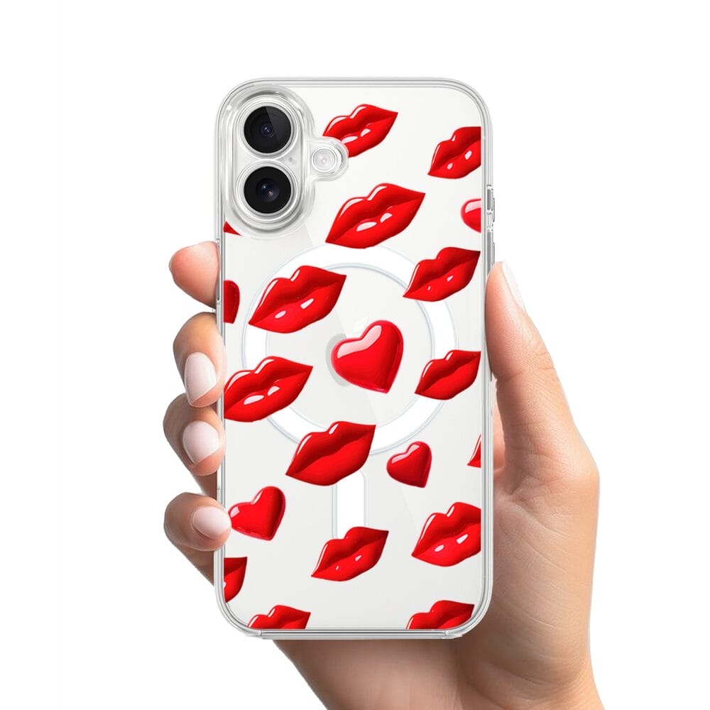 Etui do iPhone 17 z MagSafe przeźroczyste, silikonowe Flexi, czerwone usta