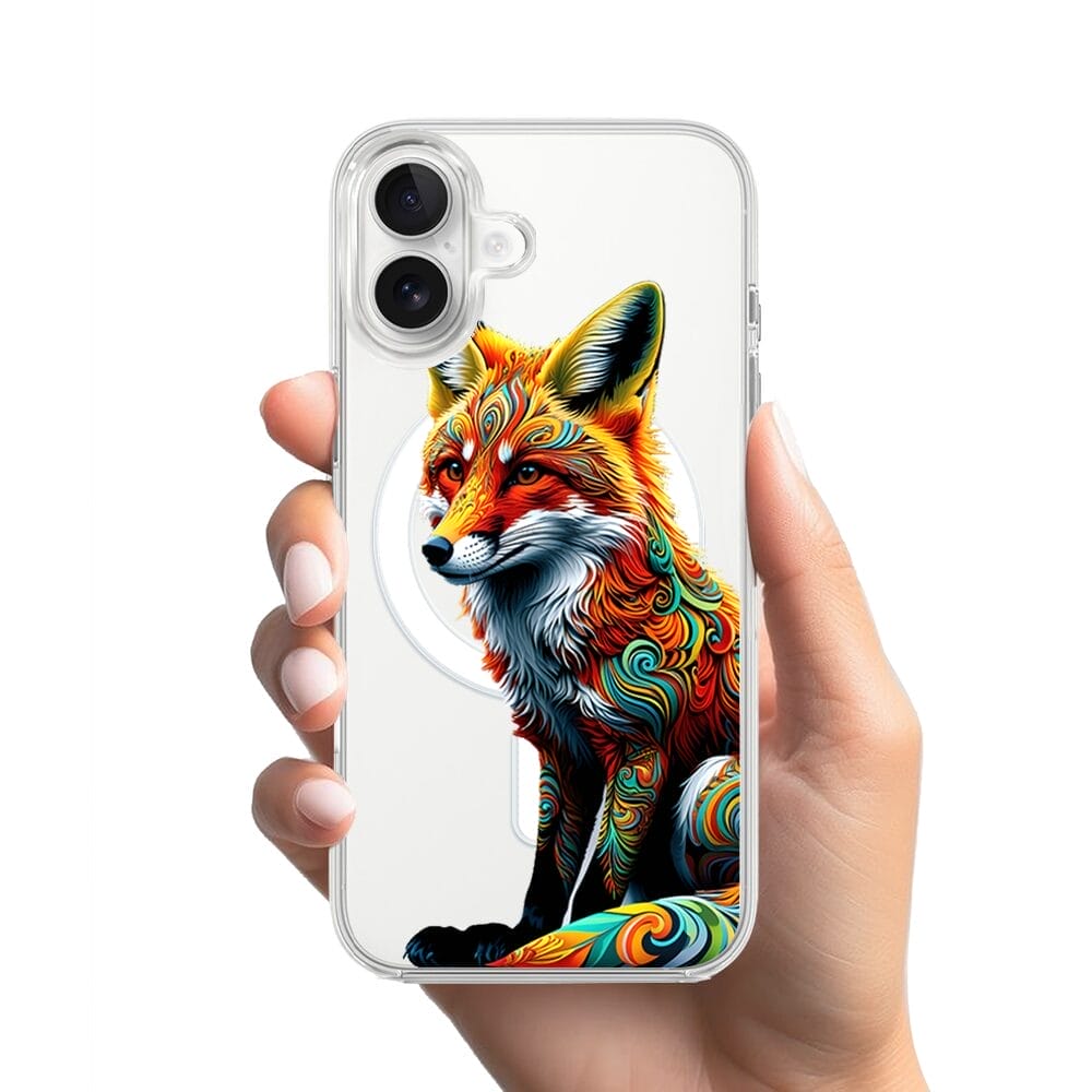 Etui do iPhone 17 z MagSafe przeźroczyste, silikonowe Flexi, Dzika Mandala, Lis
