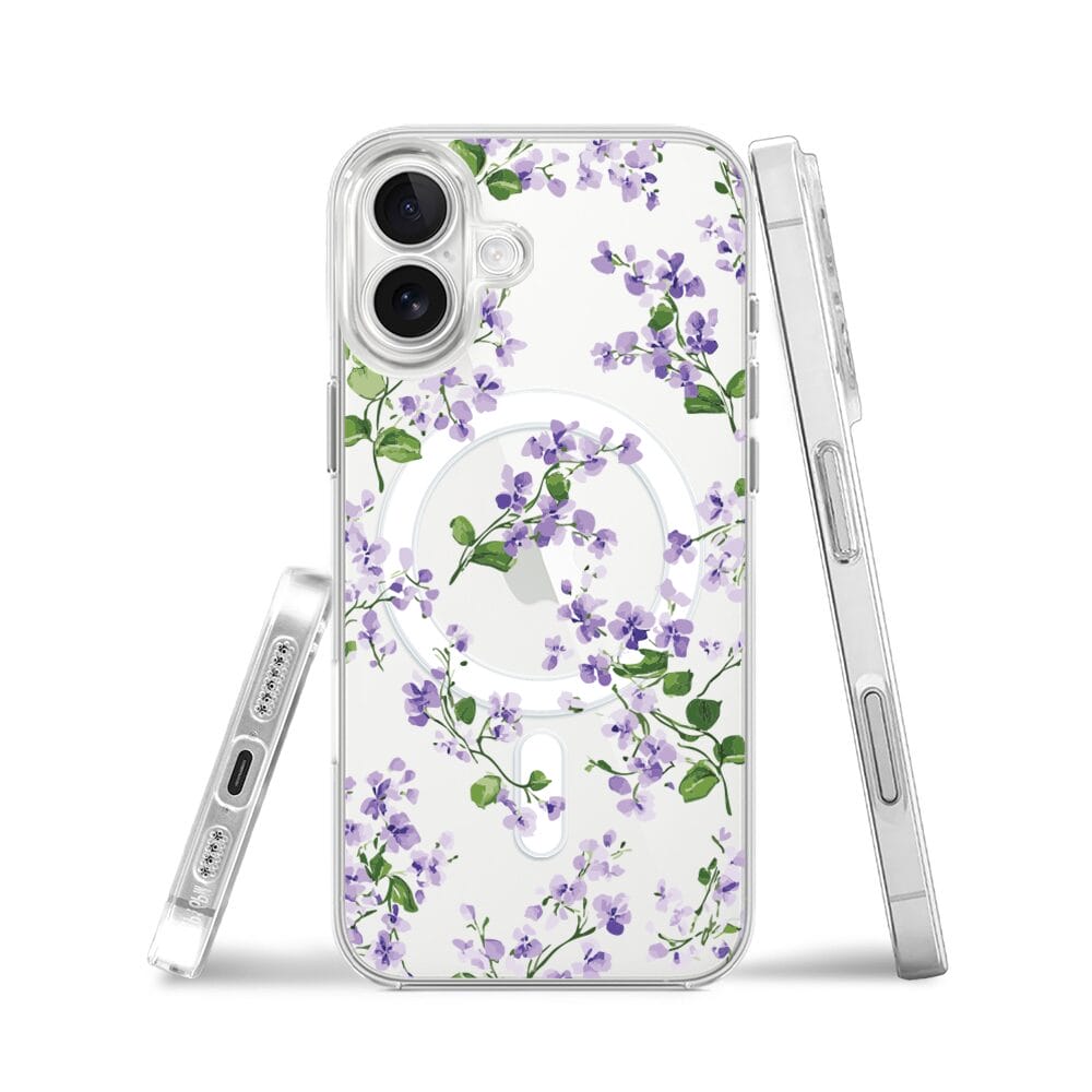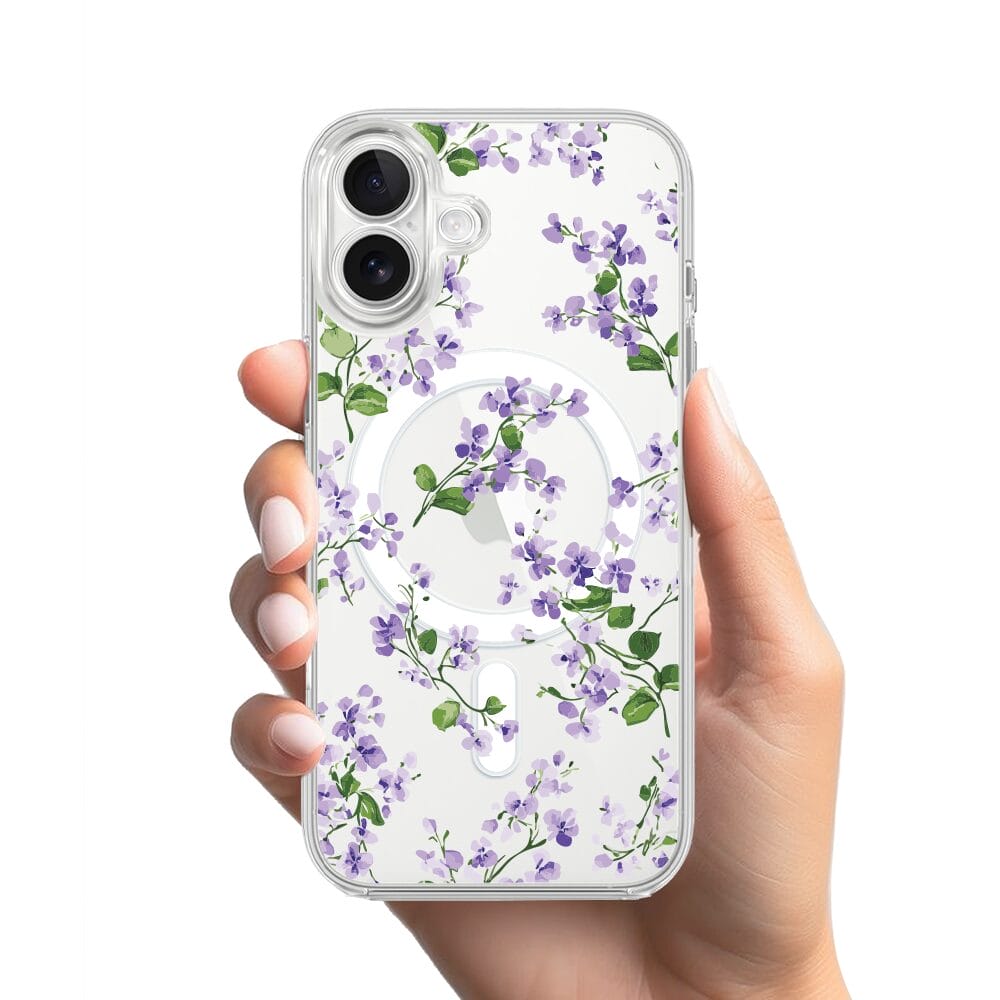 Etui do iPhone 17 z MagSafe przeźroczyste, silikonowe Flexi, Fioletowe Bratki