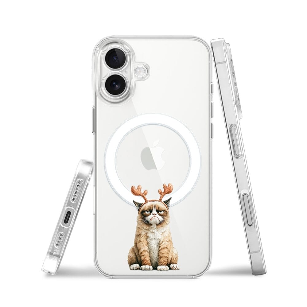 Etui do iPhone 17 z MagSafe przeźroczyste, silikonowe Flexi, Przytulne święta, Kot który nie chciał być reniferem