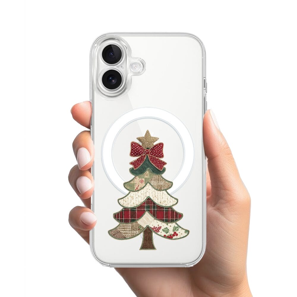 Etui do iPhone 17 z MagSafe przeźroczyste, silikonowe Flexi, Przytulne święta, Kraciasta choinka