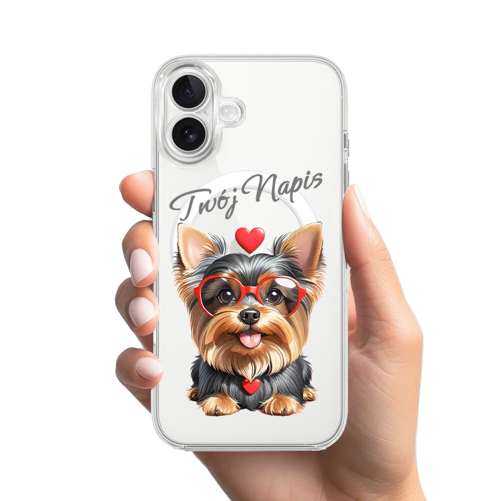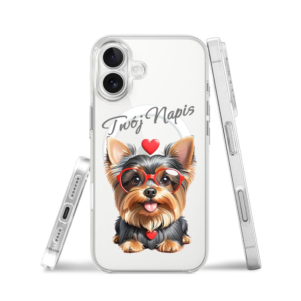Etui do iPhone 17 z MagSafe przeźroczyste, silikonowe Flexi, Puppy Love, pies rasy York