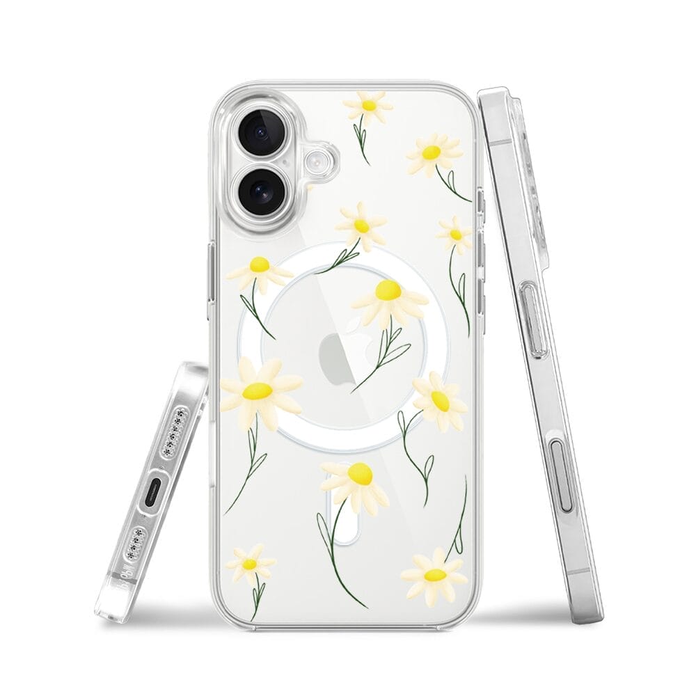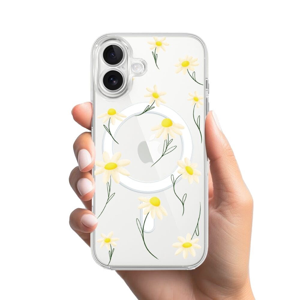 Etui do iPhone 17 z MagSafe przeźroczyste, silikonowe Flexi, stokrotki