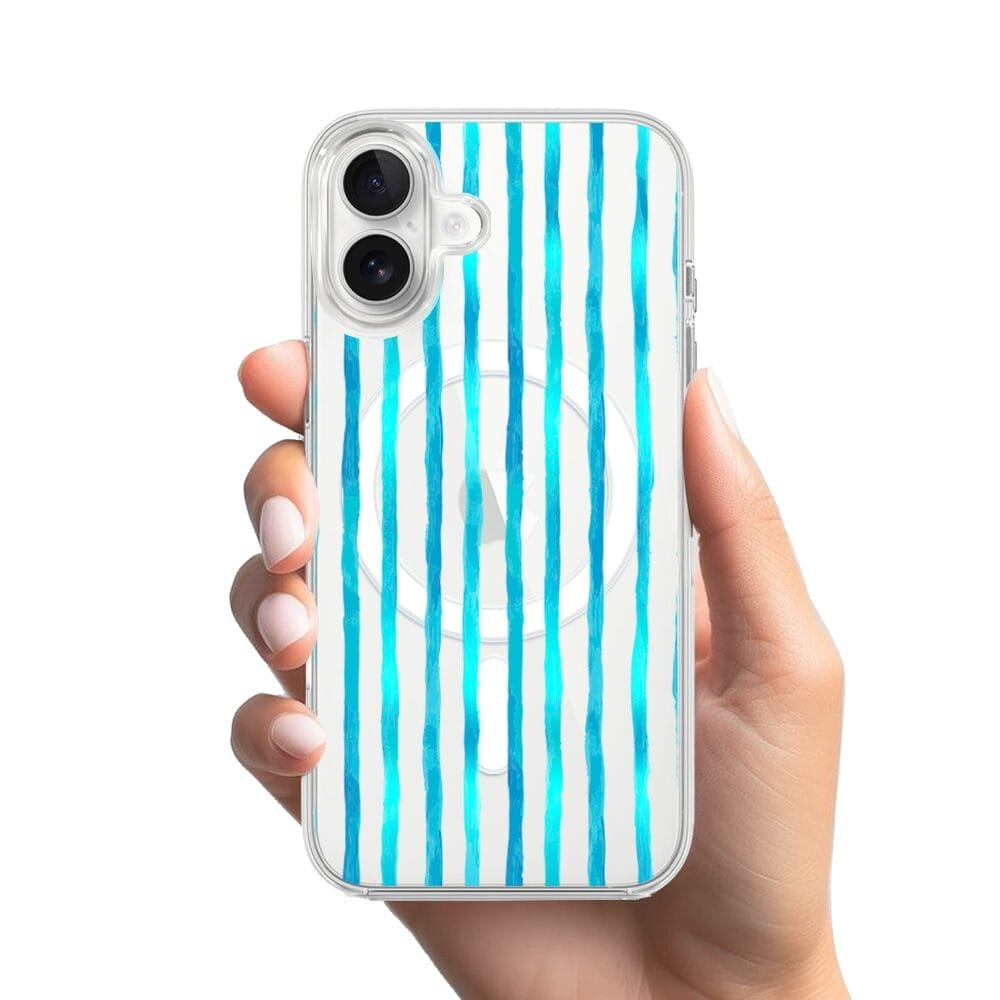 Etui do iPhone 17 z MagSafe przeźroczyste, silikonowe Flexi, Summer Patterns, błękitne paski