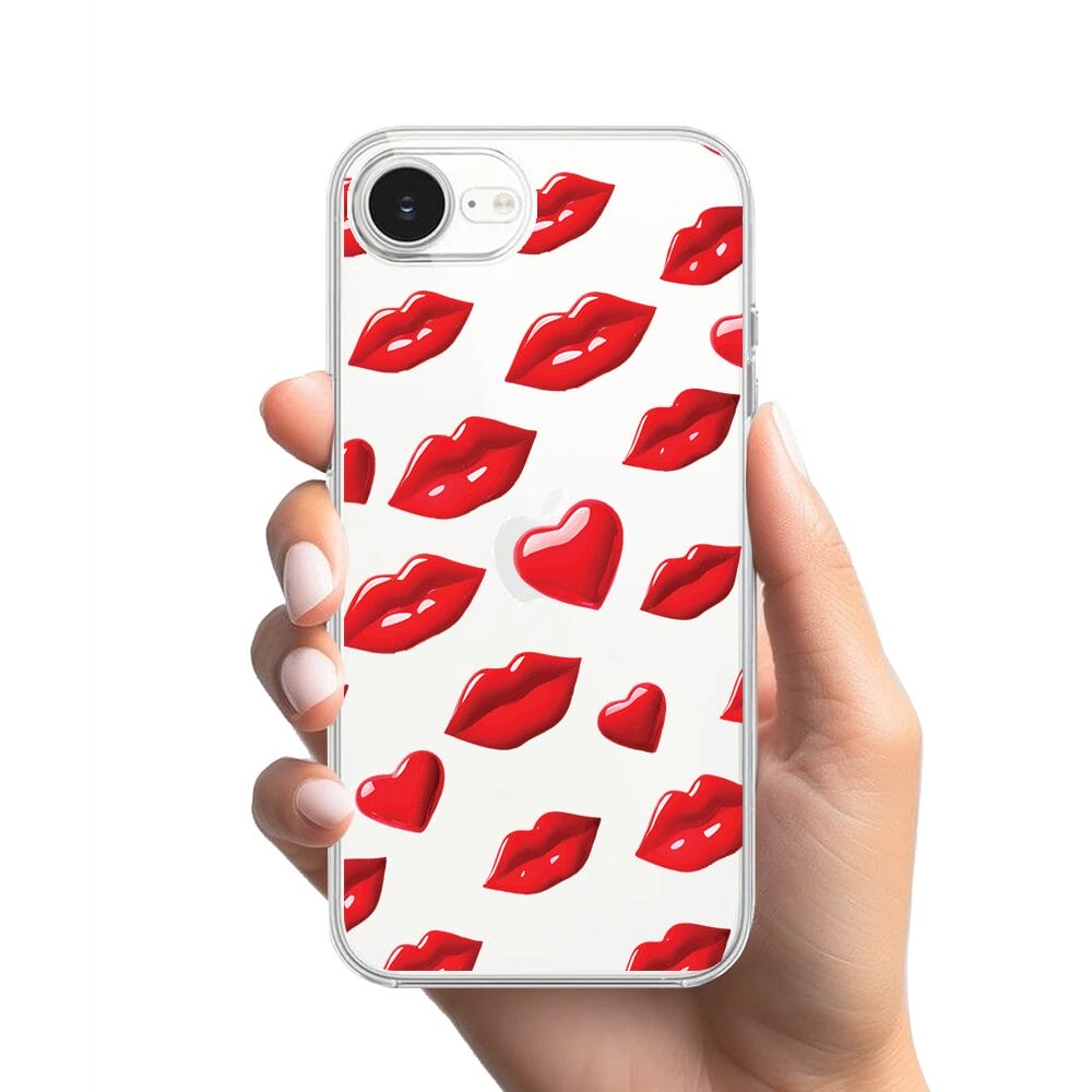 Etui do iPhone 17e przeźroczyste, silikonowe Flexi, czerwone usta