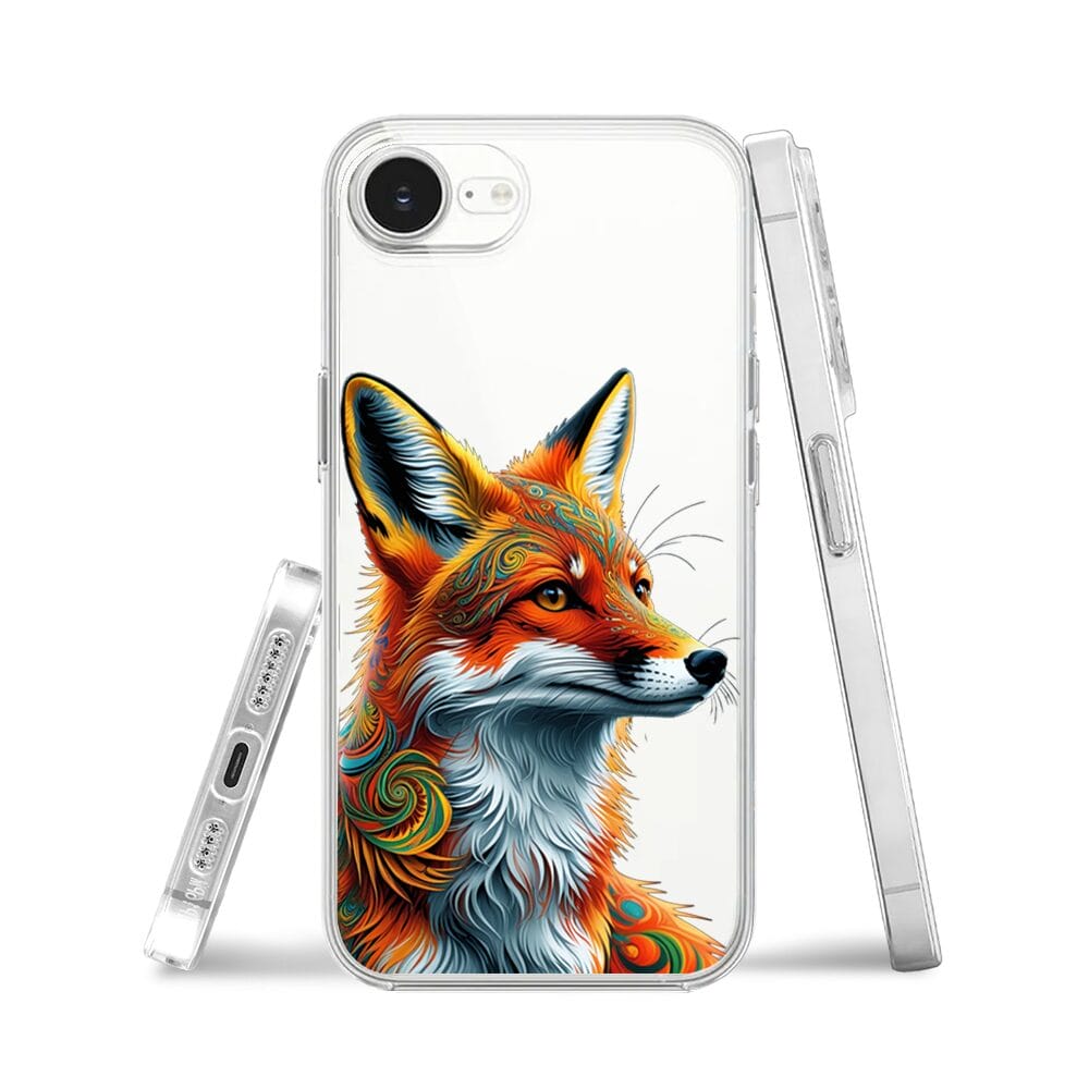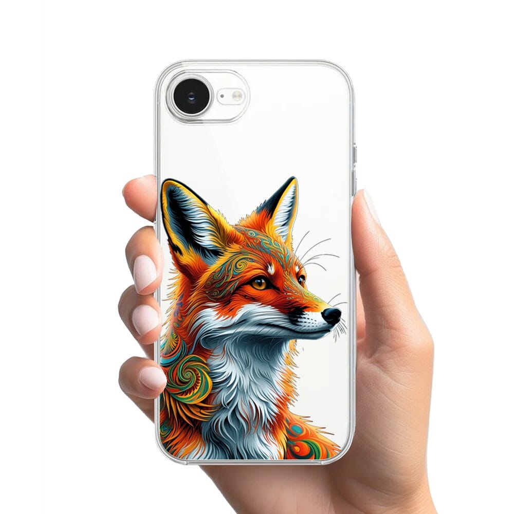 Etui do iPhone 17e przeźroczyste, silikonowe Flexi, Dzika Mandala, Twarz lisa