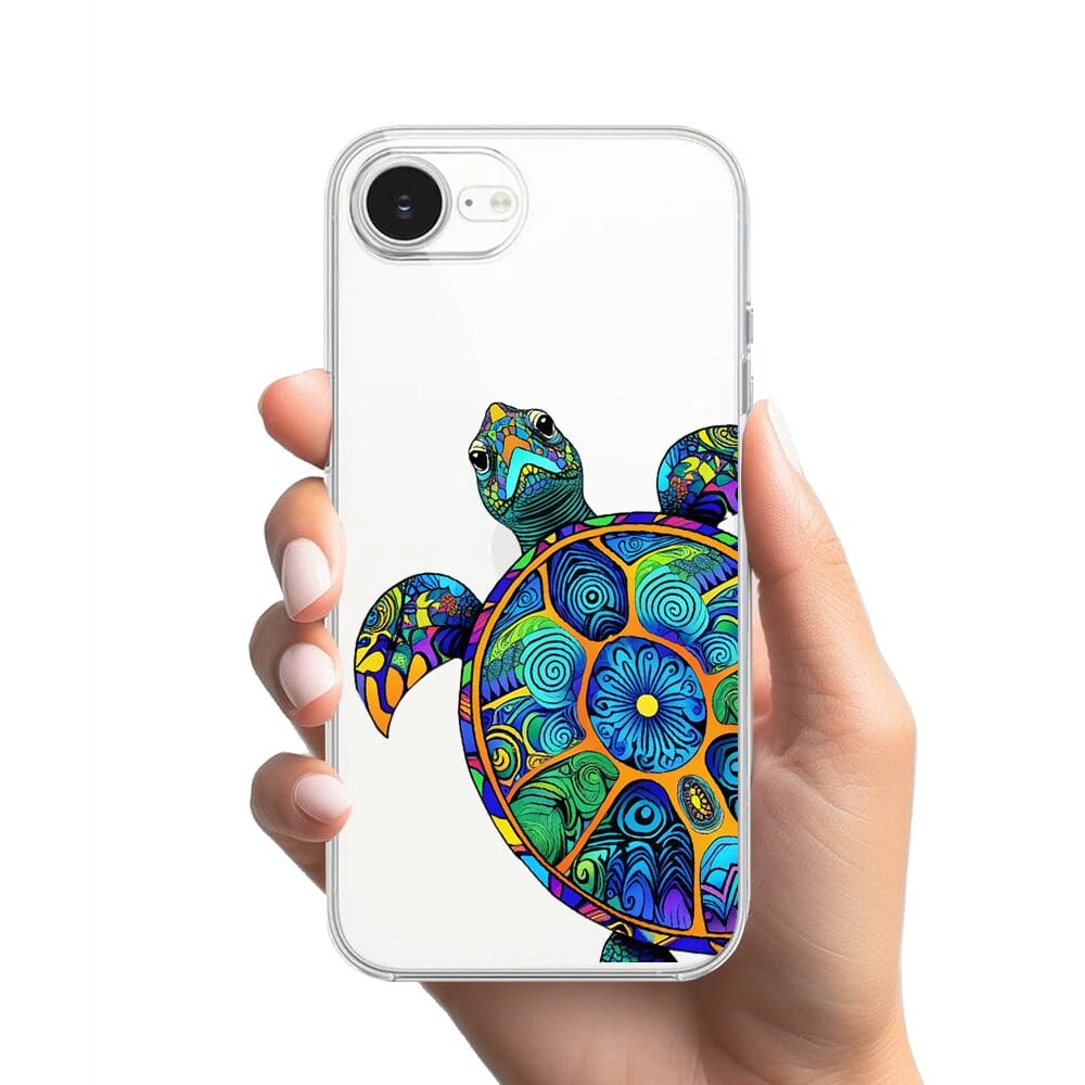 Etui do iPhone 17e przeźroczyste, silikonowe Flexi, Dzika Mandala, Żółw