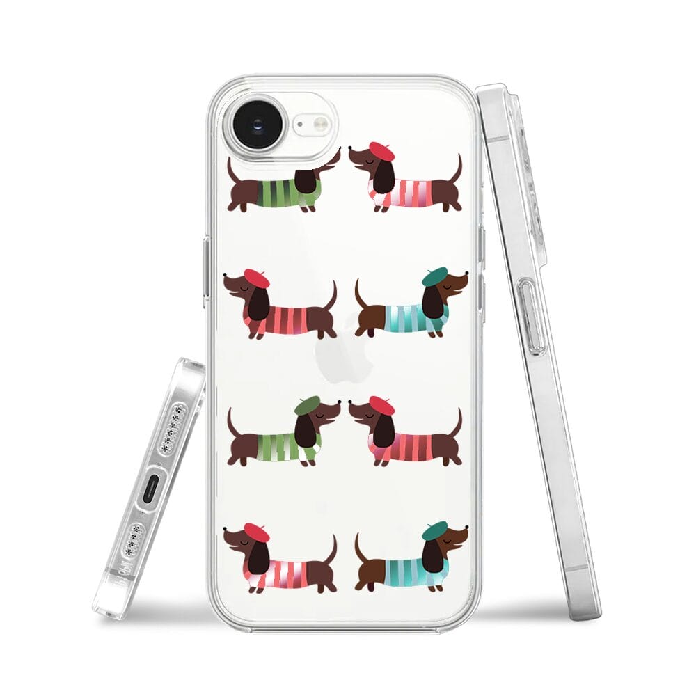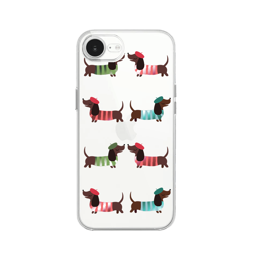 Etui do iPhone 17e przeźroczyste, silikonowe Flexi, jamnik w Paryżu