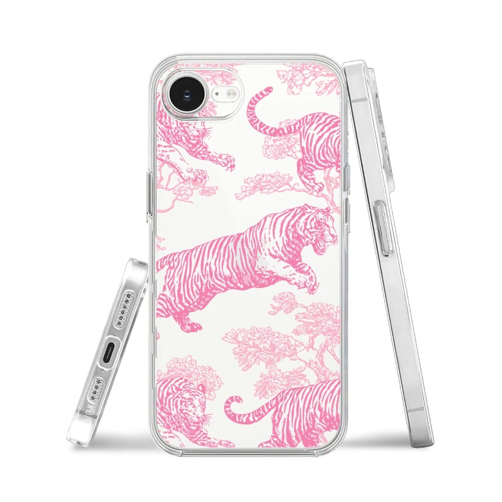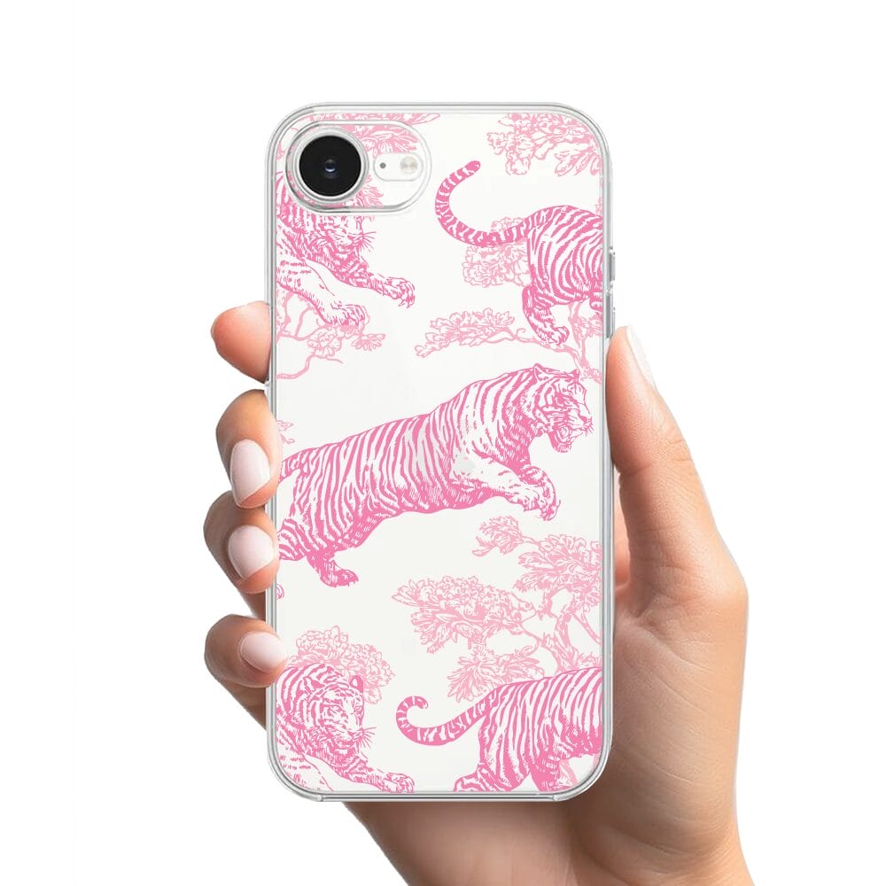Etui do iPhone 17e przeźroczyste, silikonowe Flexi, Mystic, Różowe tygrysy