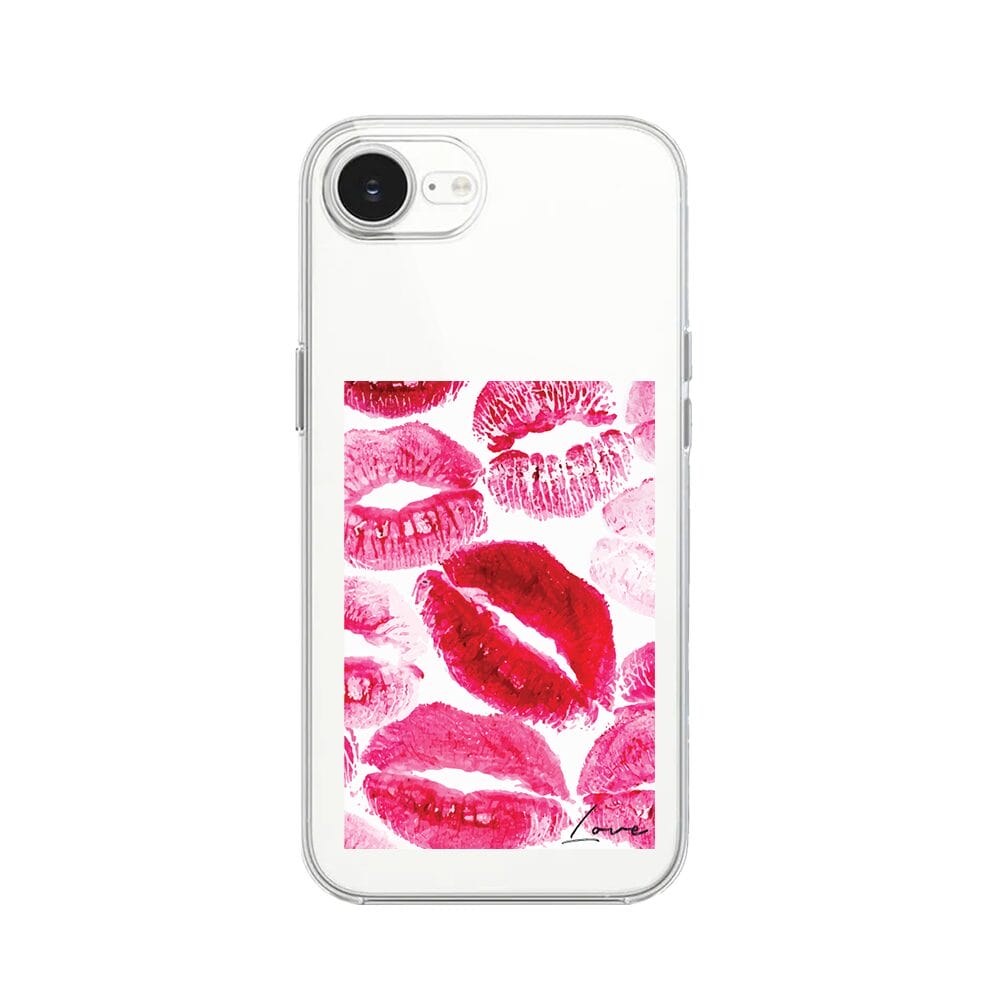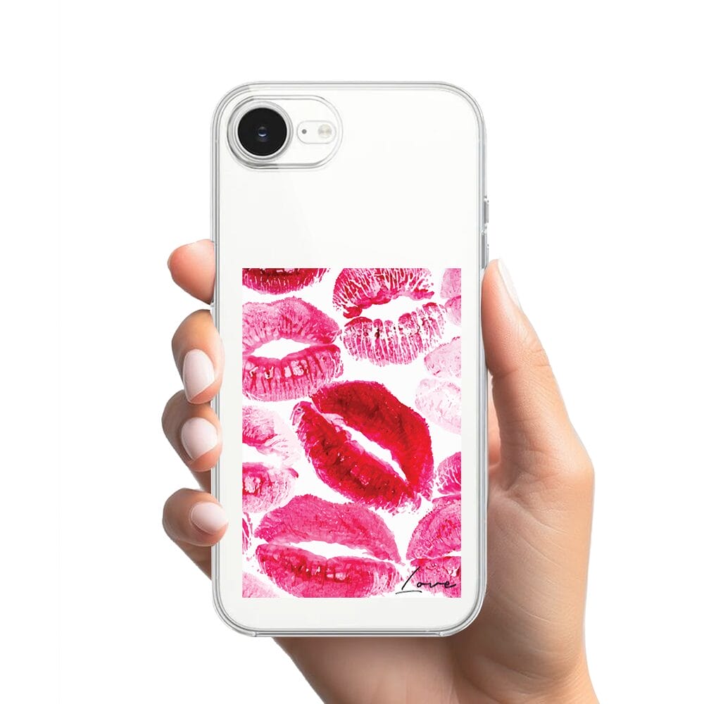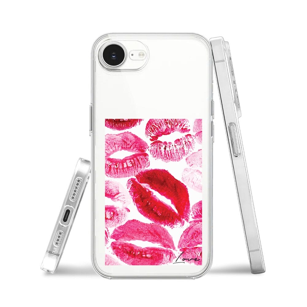 Etui do iPhone 17e przeźroczyste, silikonowe Flexi, pocałunki z napisem „love”