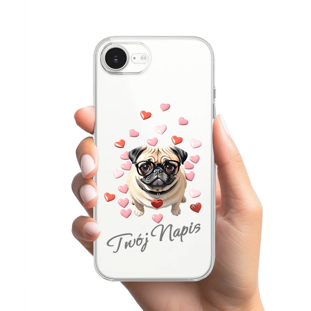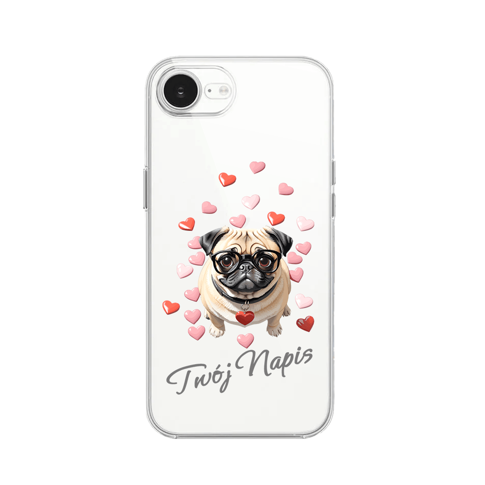 Etui do iPhone 17e przeźroczyste, silikonowe Flexi, Puppy Love, pies rasy Mops