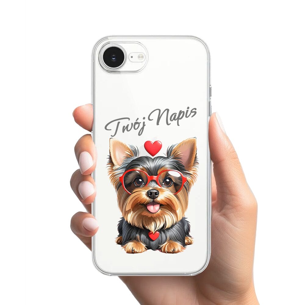 Etui do iPhone 17e przeźroczyste, silikonowe Flexi, Puppy Love, pies rasy York