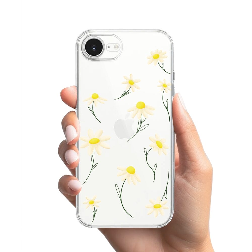 Etui do iPhone 17e przeźroczyste, silikonowe Flexi, stokrotki