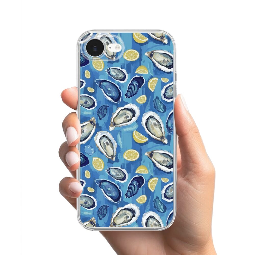 Etui do iPhone 17e przeźroczyste, silikonowe Flexi, Summer Patterns, ostrygi z cytrynką
