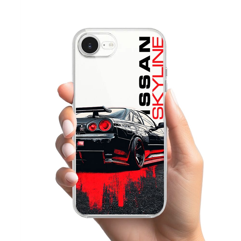 Etui do iPhone 17e przeźroczyste, silikonowe Flexi, Szybkie Auta, czarny Skyline