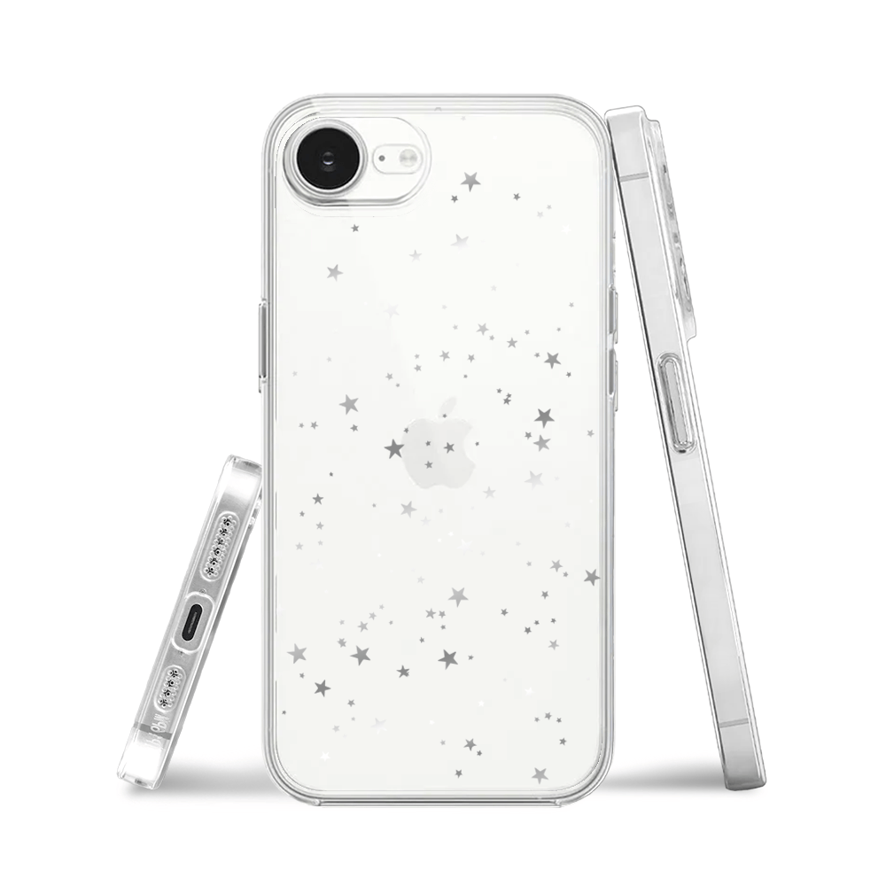 Etui do iPhone 17e przeźroczyste, silikonowe Flexi, Szampańskie gwiazdki