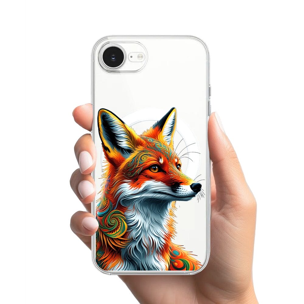 Etui do iPhone 17e z MagSafe przeźroczyste, silikonowe Flexi, Dzika Mandala, Twarz lisa