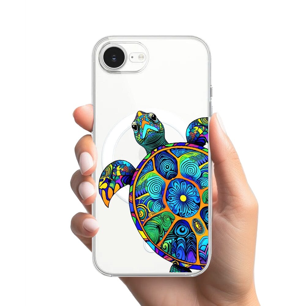 Etui do iPhone 17e z MagSafe przeźroczyste, silikonowe Flexi, Dzika Mandala, Żółw