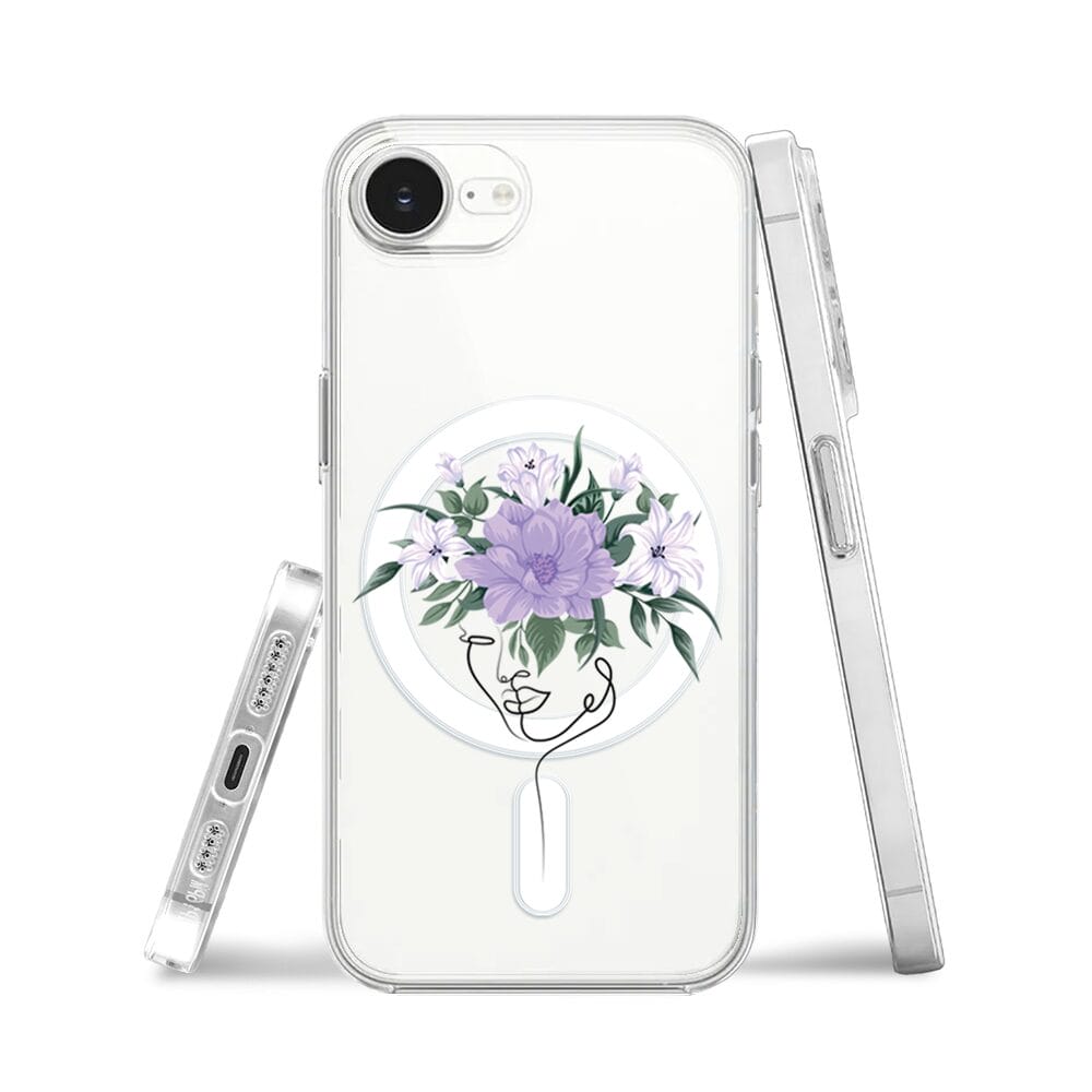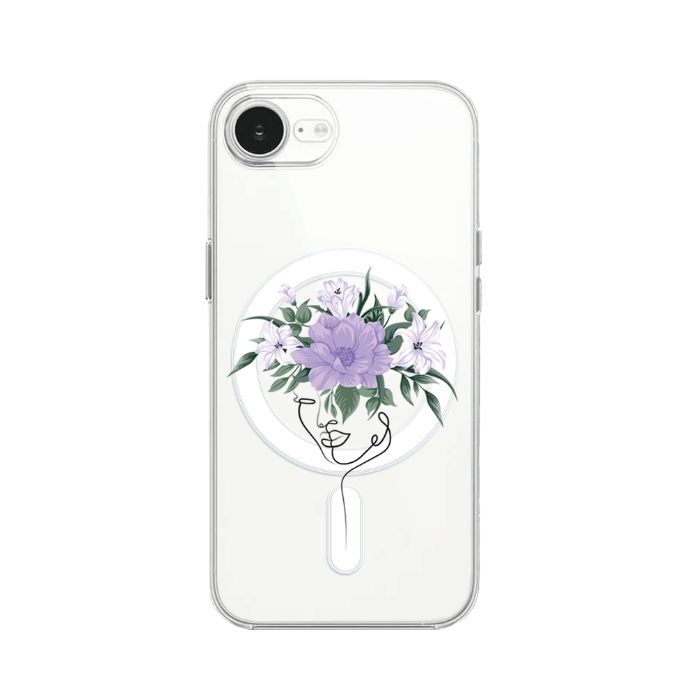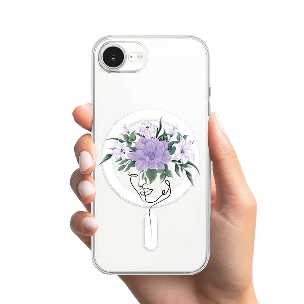 Etui do iPhone 17e z MagSafe przeźroczyste, silikonowe Flexi, kobieta z kwiatami