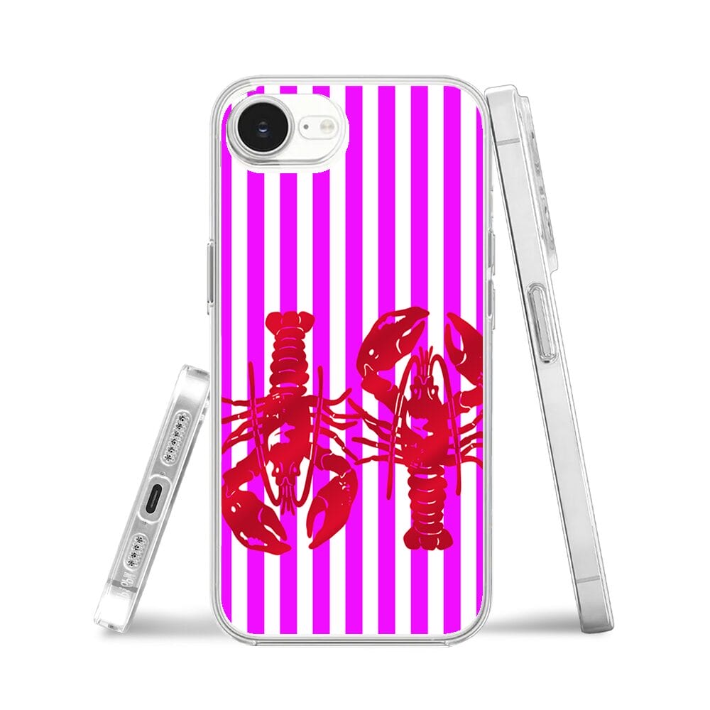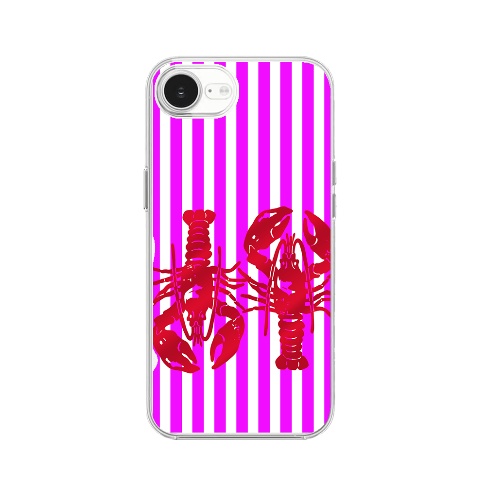 Etui do iPhone 17e z MagSafe przeźroczyste, silikonowe Flexi, kraby z różowymi paskami