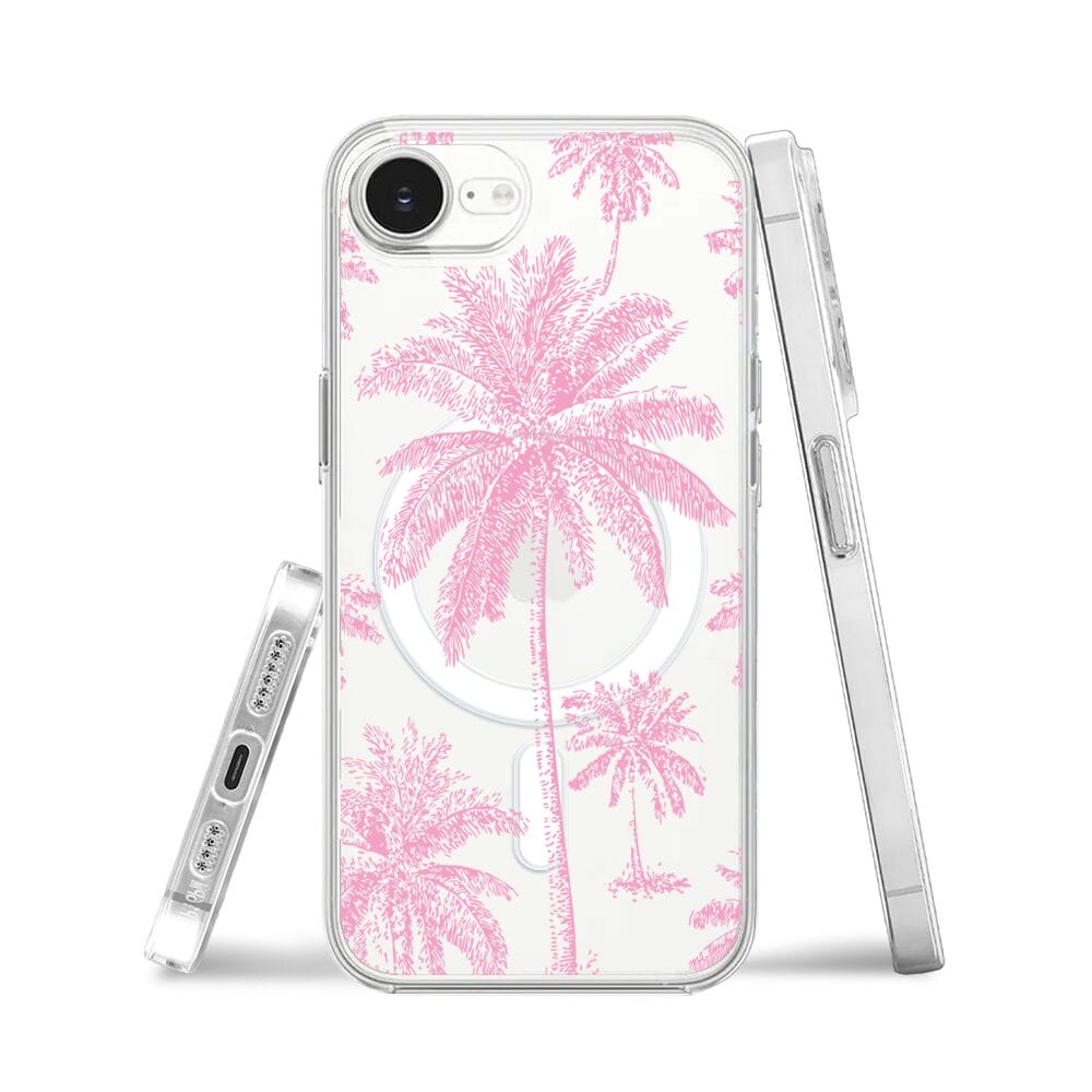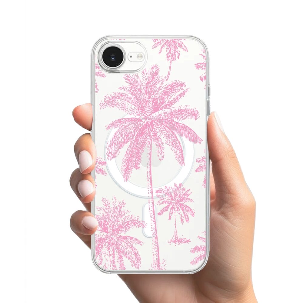 Etui do iPhone 17e z MagSafe przeźroczyste, silikonowe Flexi, Mystic, Różowe palmy