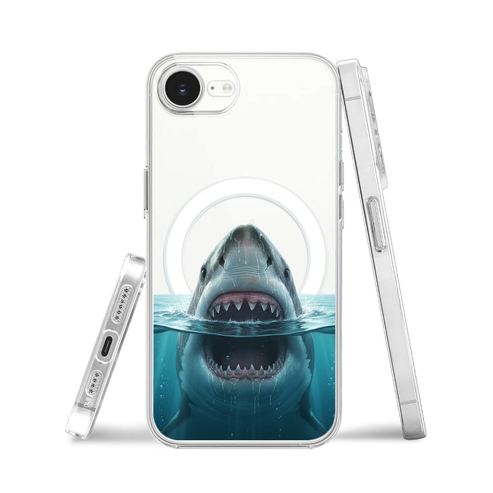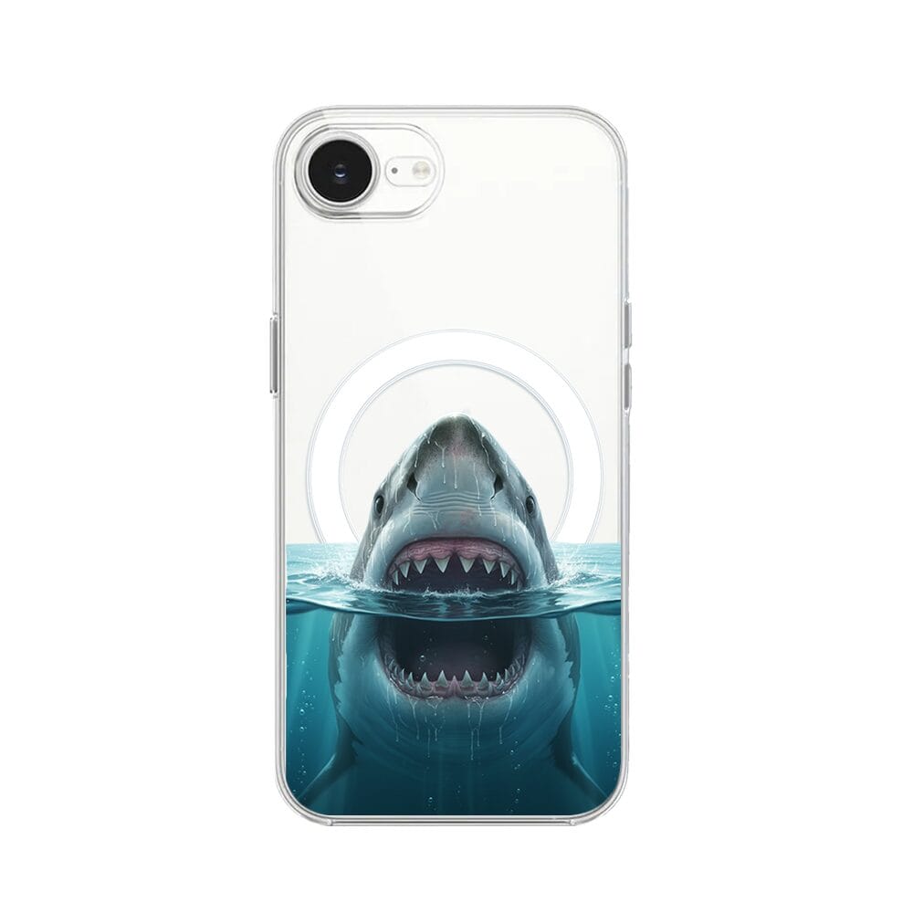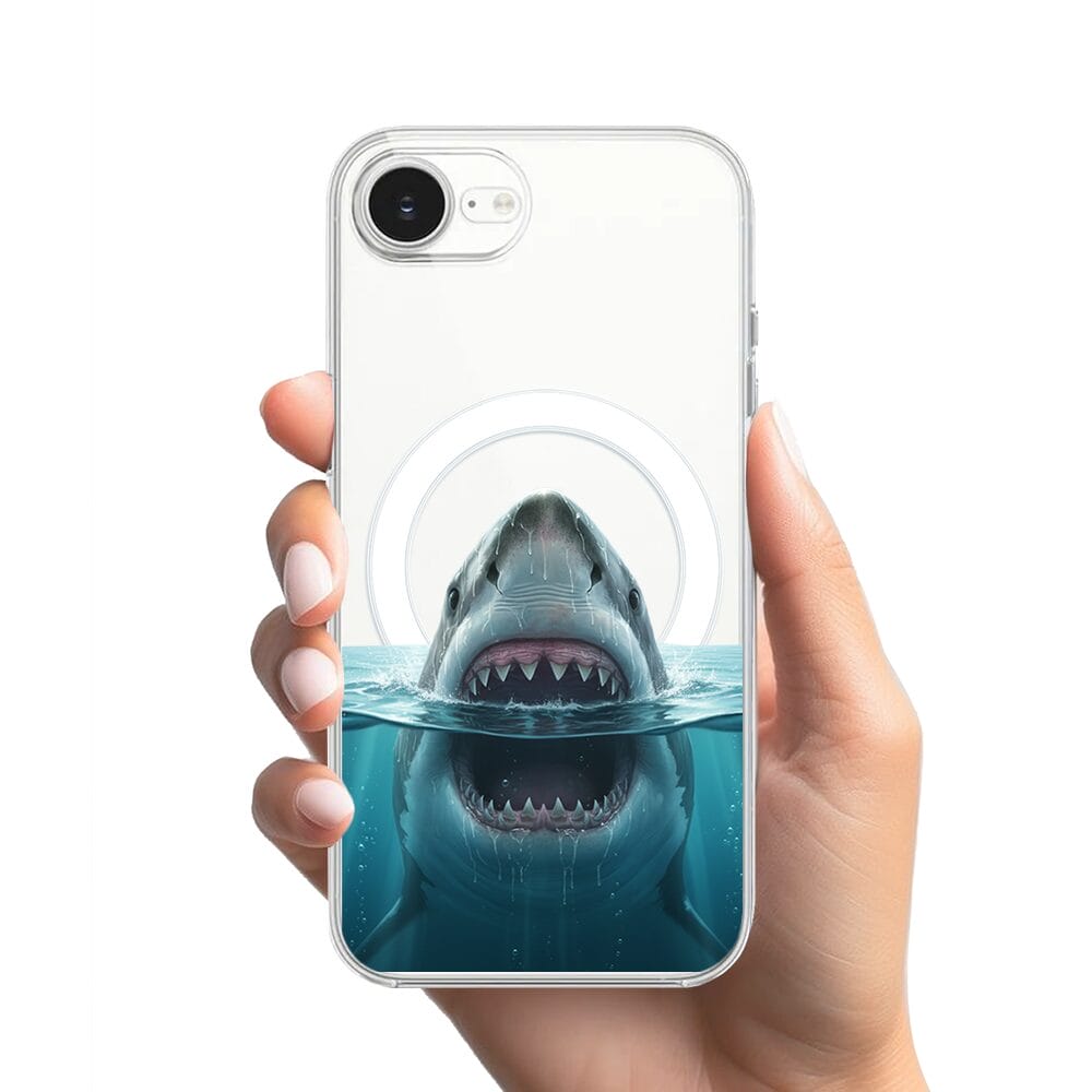 Etui do iPhone 17e z MagSafe przeźroczyste, silikonowe Flexi, Paradise, żarłacz biały
