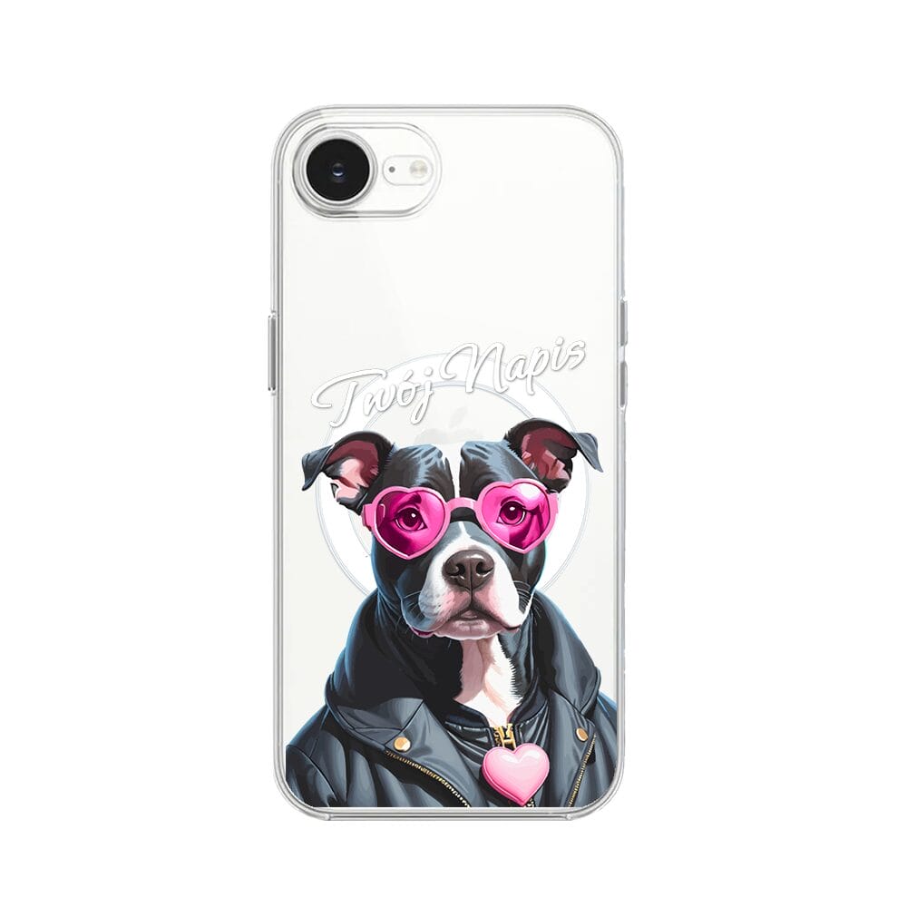 Etui do iPhone 17e z MagSafe przeźroczyste, silikonowe Flexi, Puppy Love, pies rasy Amstaff
