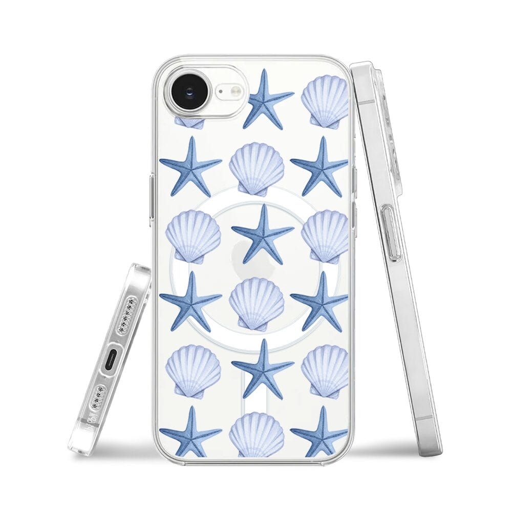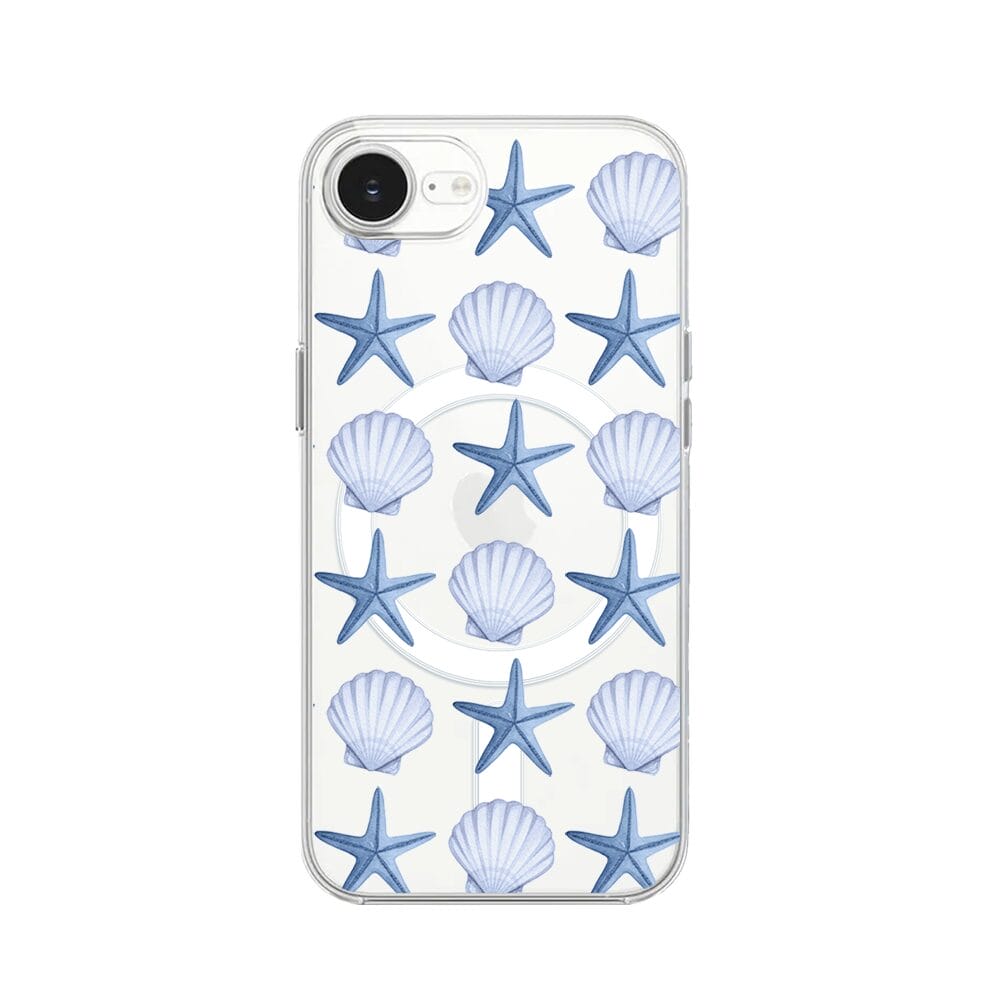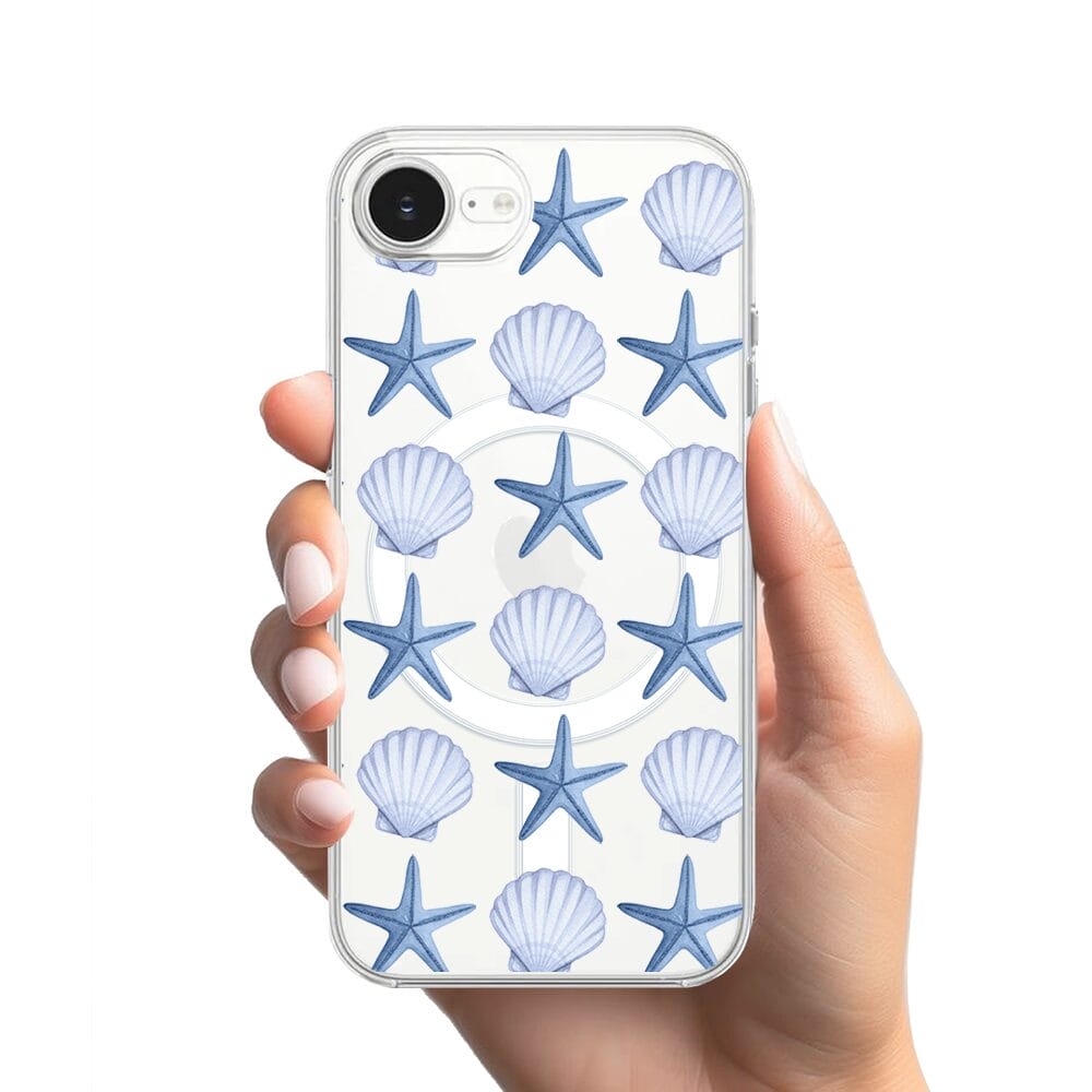 Etui do iPhone 17e z MagSafe przeźroczyste, silikonowe Flexi, Summer Patterns, niebieskie rozgwiazdy