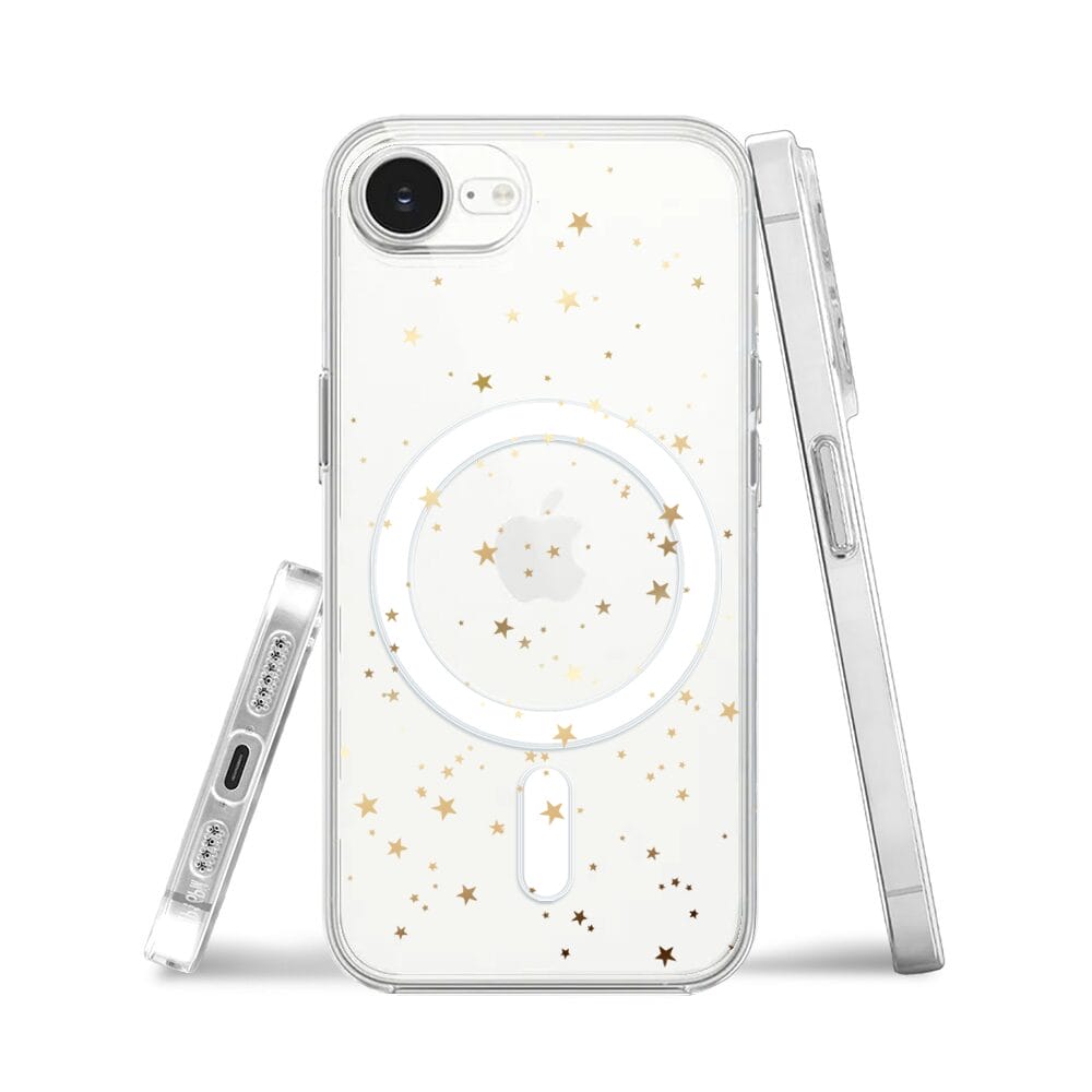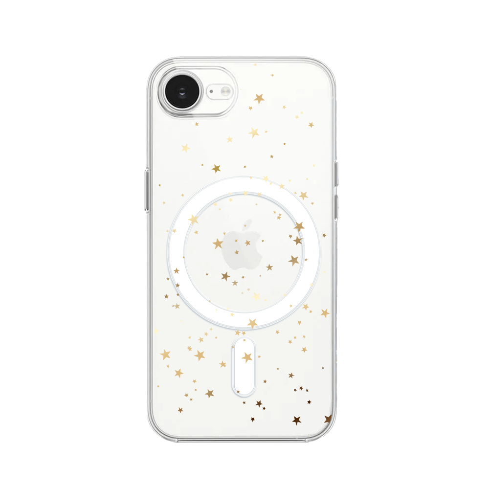 Etui do iPhone 17e z MagSafe przeźroczyste, silikonowe Flexi, Złote gwiazdki