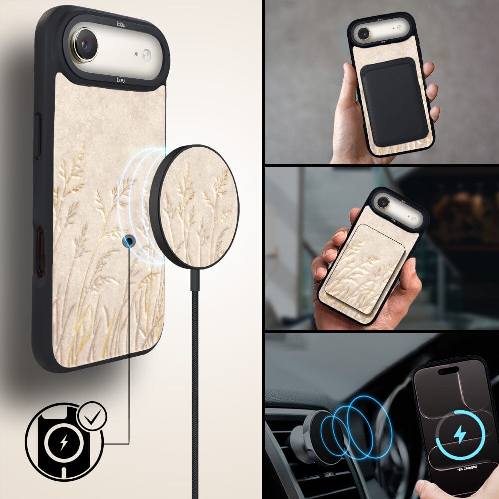 Etui do iPhone Air IBIZU DropGuard Matt z MagSafe, Relief Garden, Kłosy z piaskowca