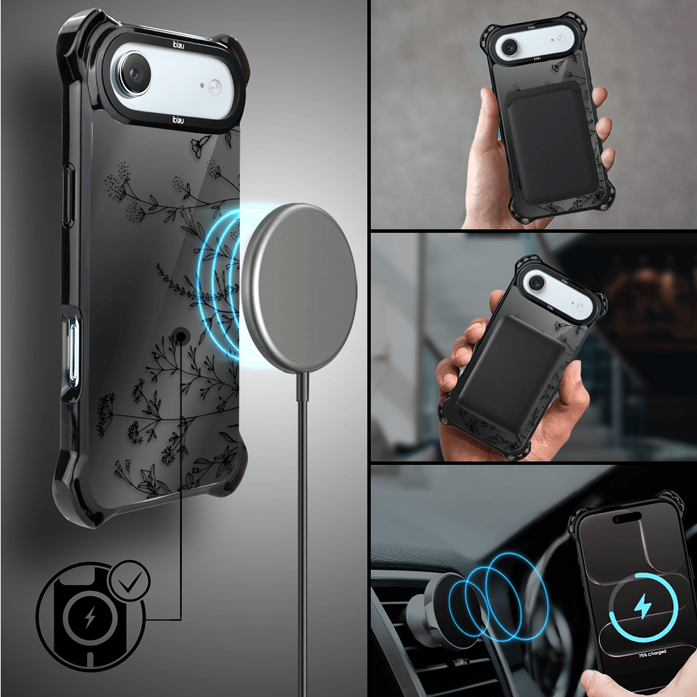 Etui do iPhone Air IBIZU DropGuard Ultra z MagSafe, Midnight Mirror, Dotyk kwiatów
