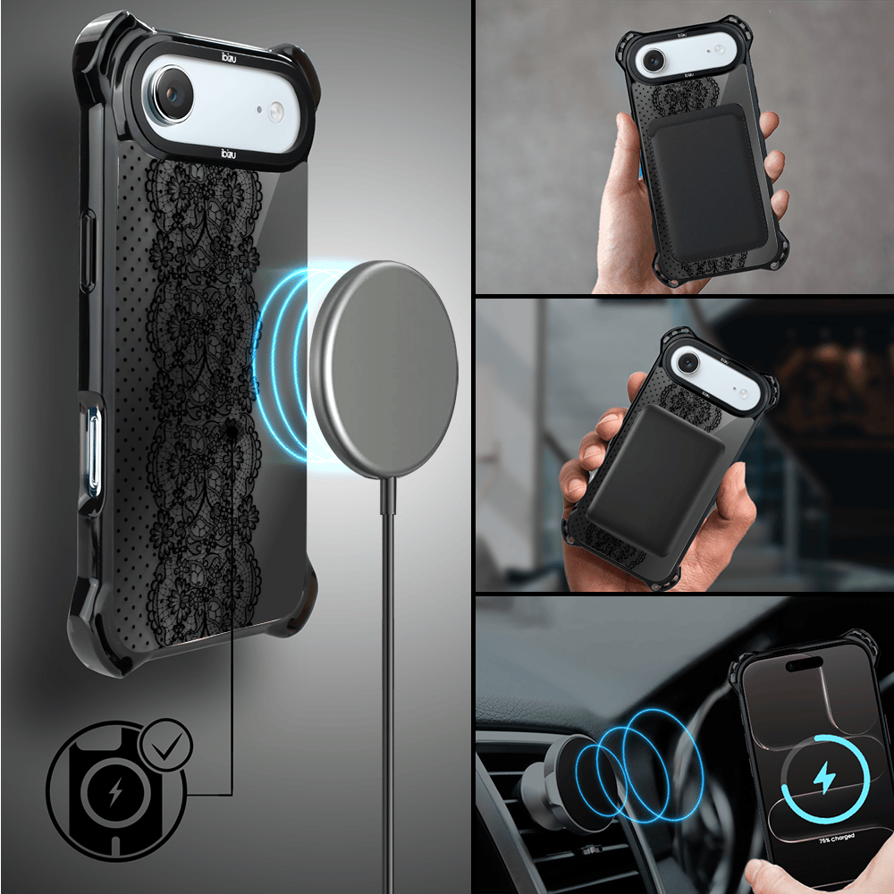 Etui do iPhone Air IBIZU DropGuard Ultra z MagSafe, Midnight, Ornamentowa koronka