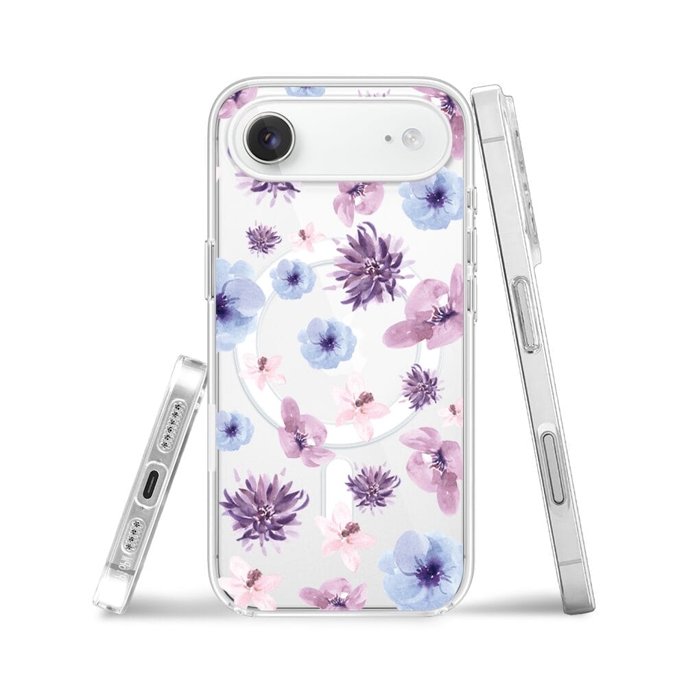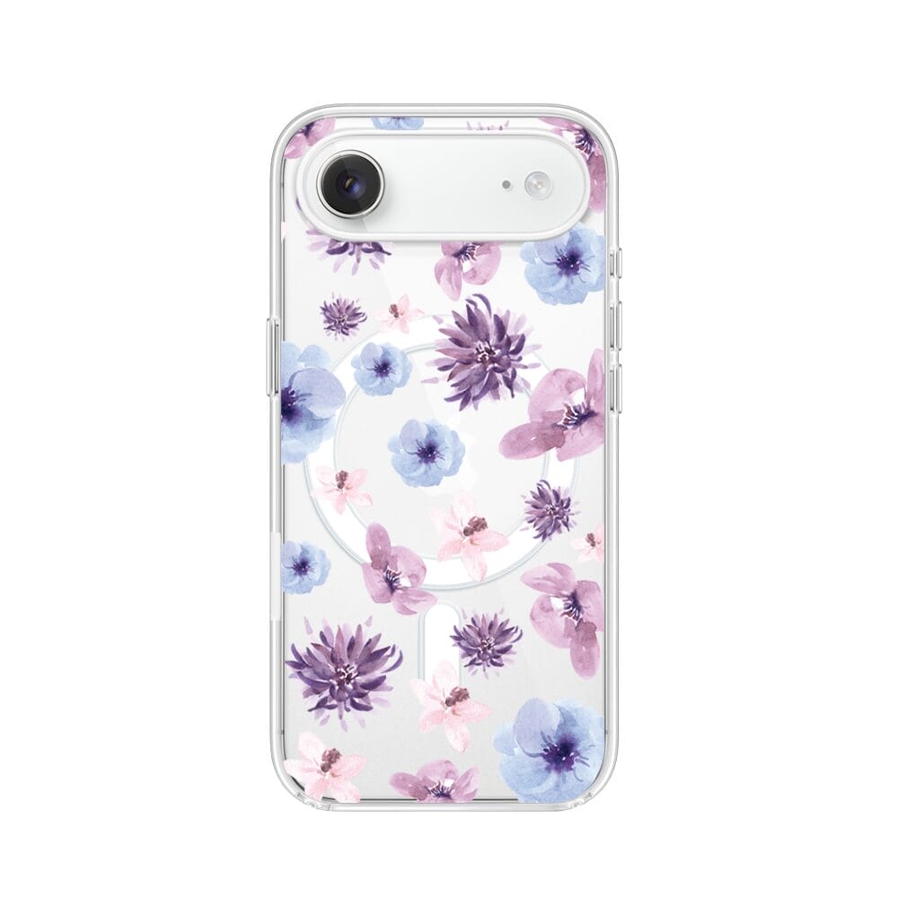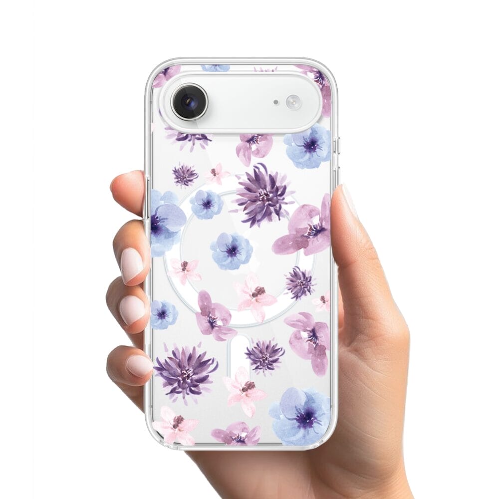 Etui do iPhone Air z MagSafe przeźroczyste, silikonowe Flexi, kwiatki niebieskie, fioletowe