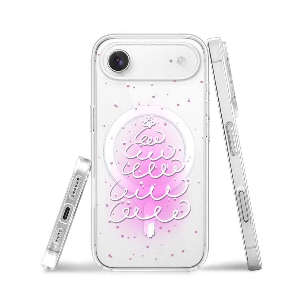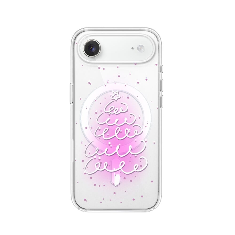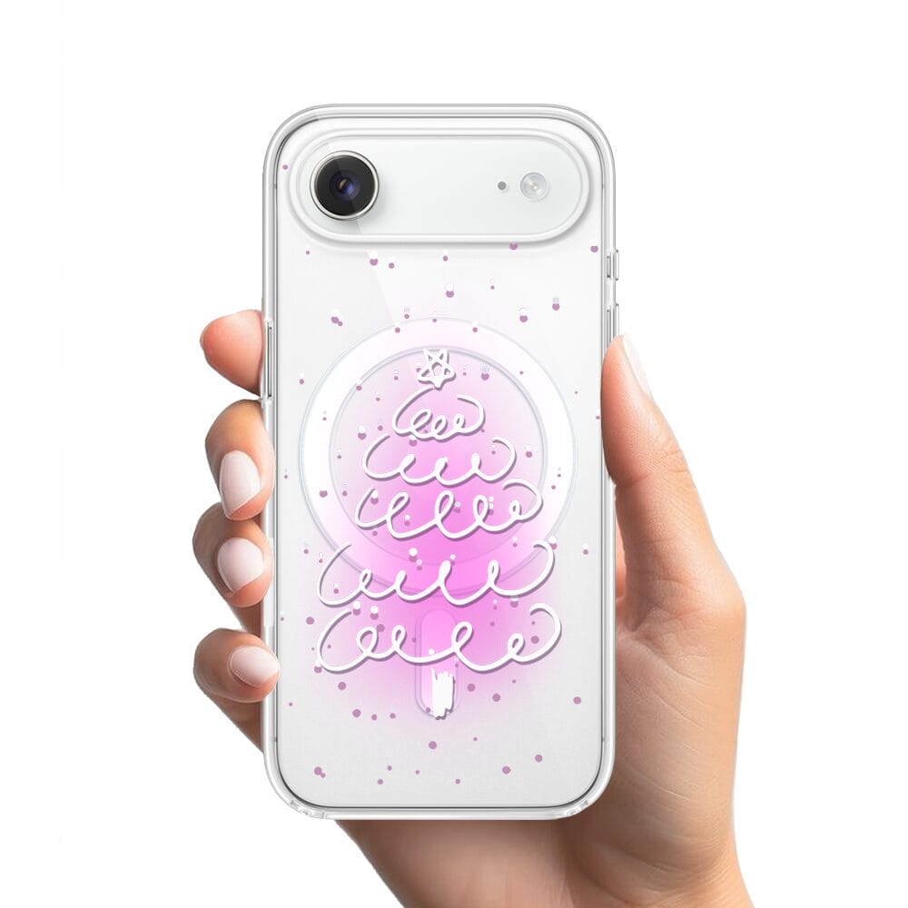 Etui do iPhone Air z MagSafe przeźroczyste, silikonowe Flexi, malowana choinka na różowym świetle