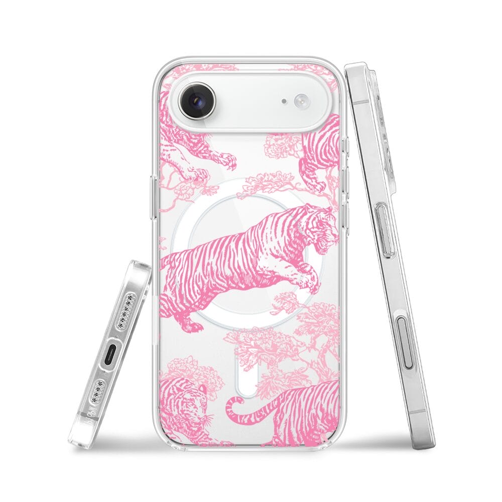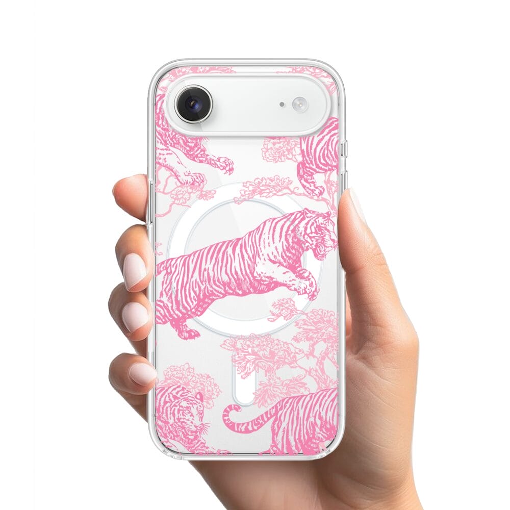 Etui do iPhone Air z MagSafe przeźroczyste, silikonowe Flexi, Mystic, Różowe tygrysy