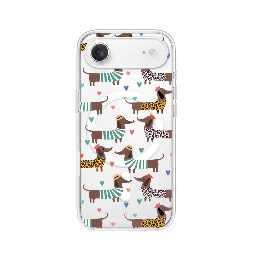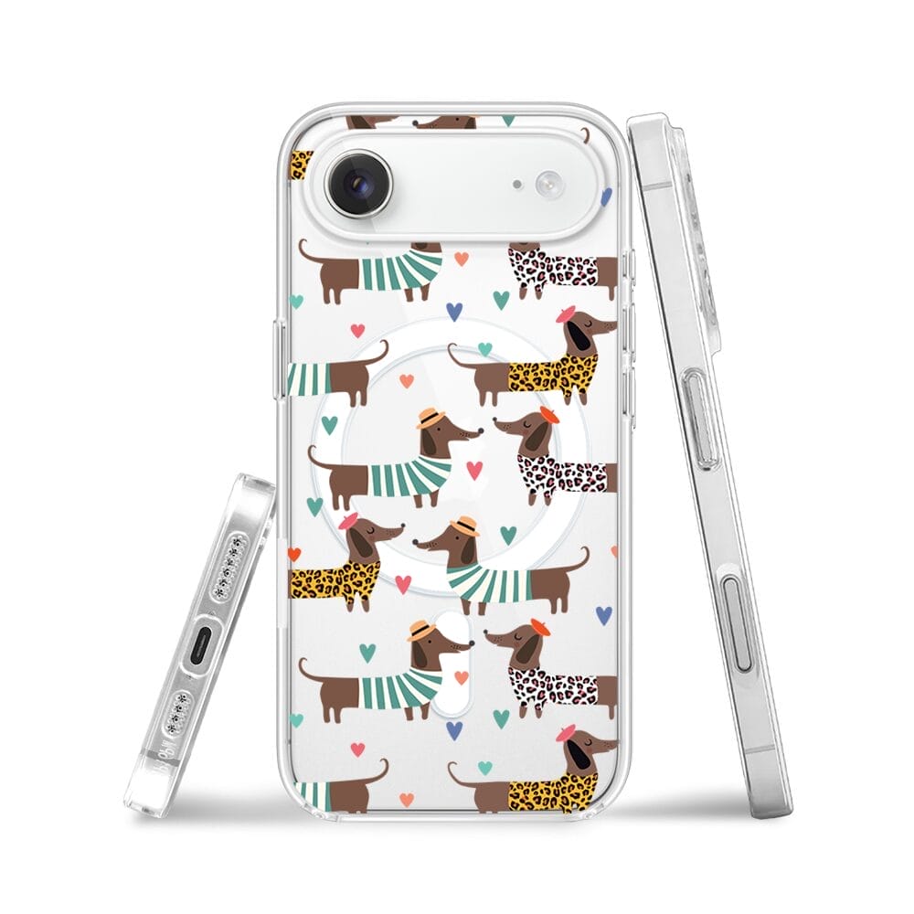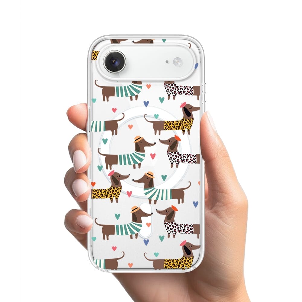 Etui do iPhone Air z MagSafe przeźroczyste, silikonowe Flexi, Summer Patterns, zakochane jamniki