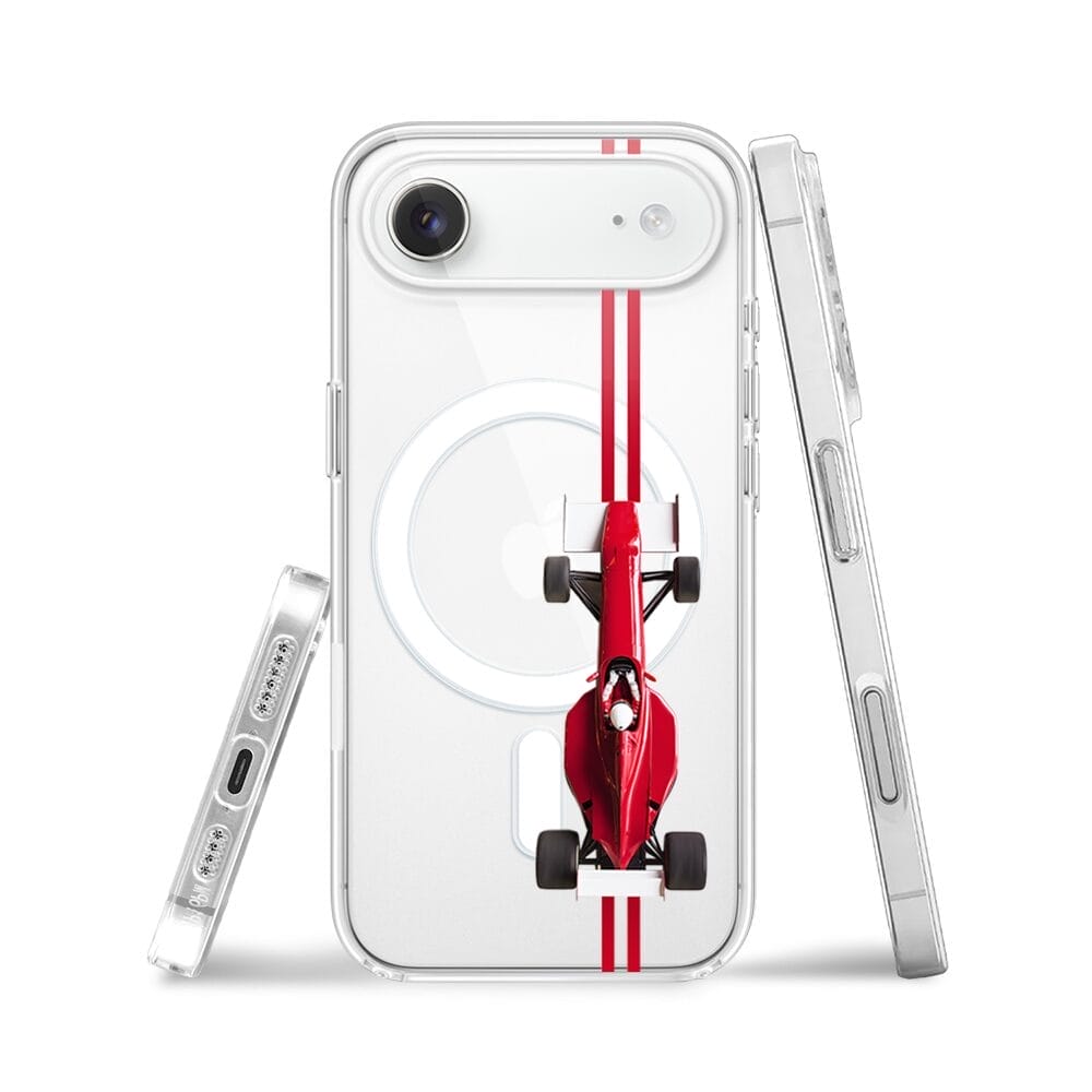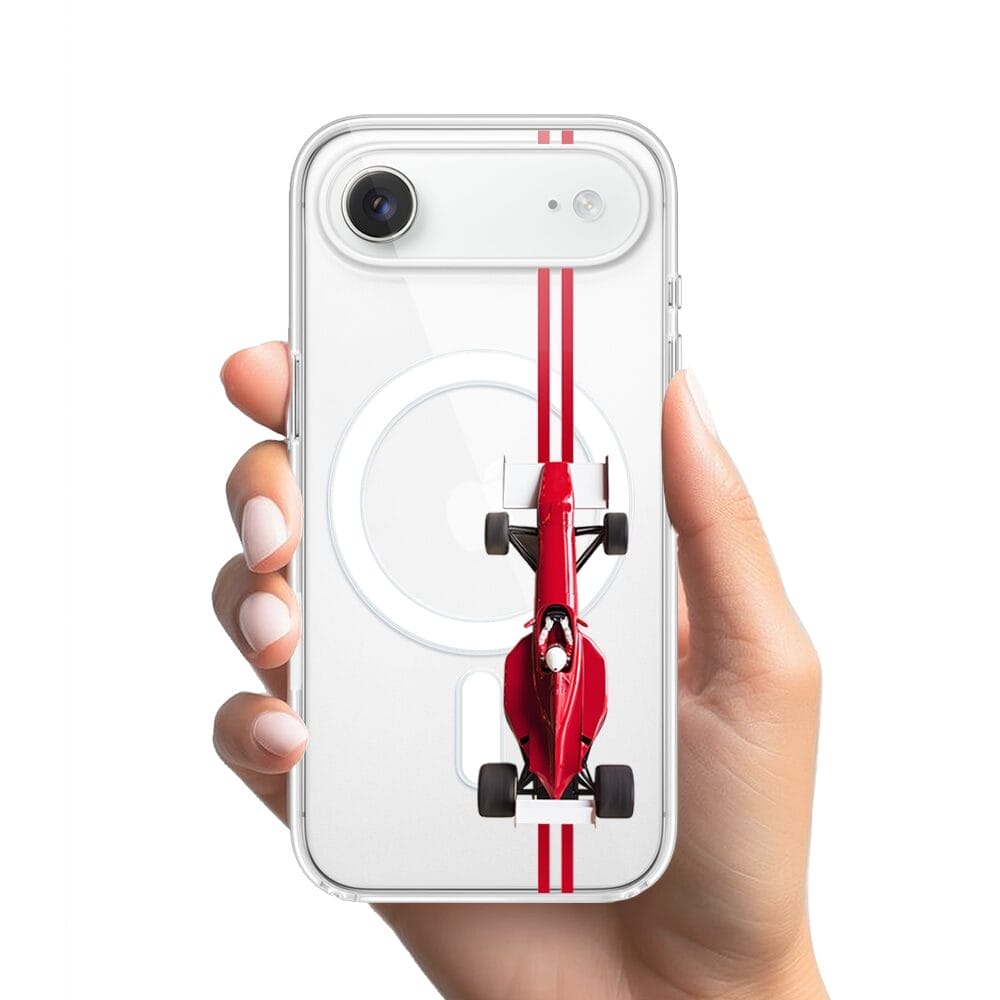 Etui do iPhone Air z MagSafe przeźroczyste, silikonowe Flexi, Szybkie Auta, czerwone F1