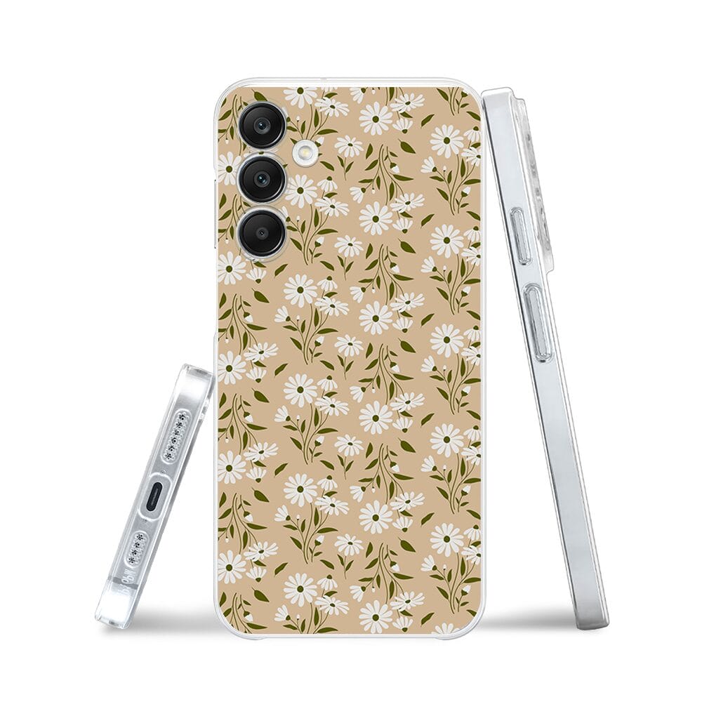 Etui do Samsung Galaxy A25 5G przeźroczyste, silikonowe Flexi, delikatne kwiatki na cielistym tle