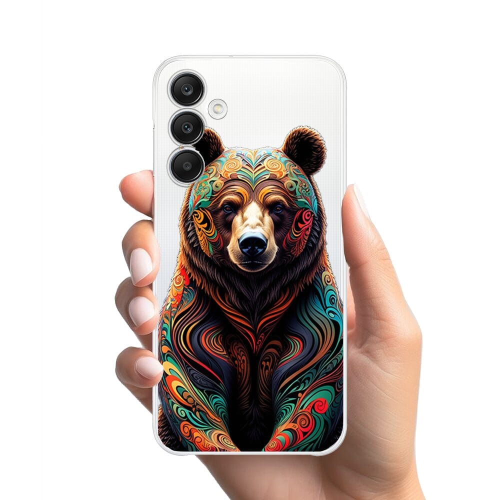 Etui do Samsung Galaxy A25 5G przeźroczyste, silikonowe Flexi, Dzika Mandala, Niedźwiedź