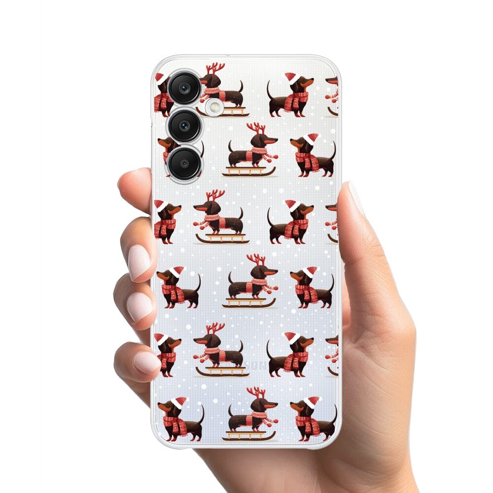Etui do Samsung Galaxy A25 5G przeźroczyste, silikonowe Flexi, Przytulne święta, Jamniki na saniach