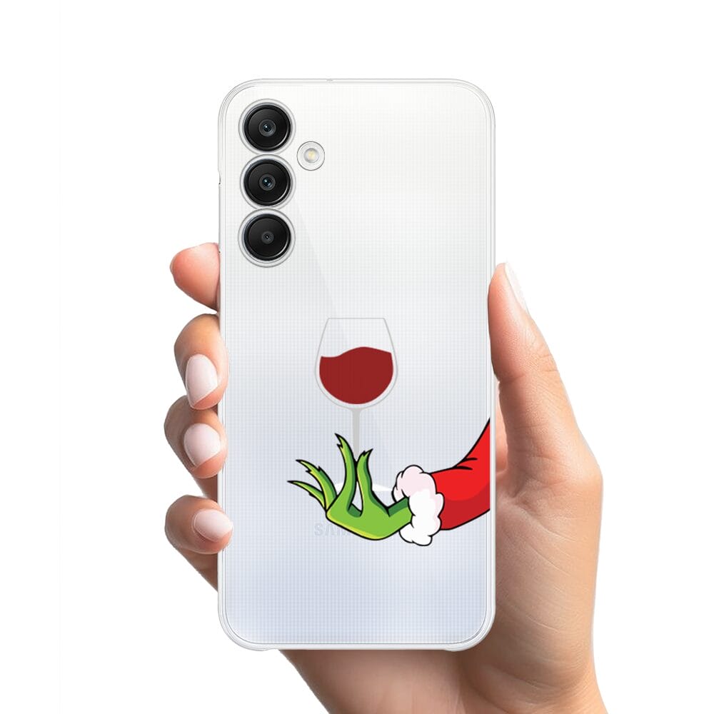 Etui do Samsung Galaxy A25 5G przeźroczyste, silikonowe Flexi, Zielony psotnik z lampką wina